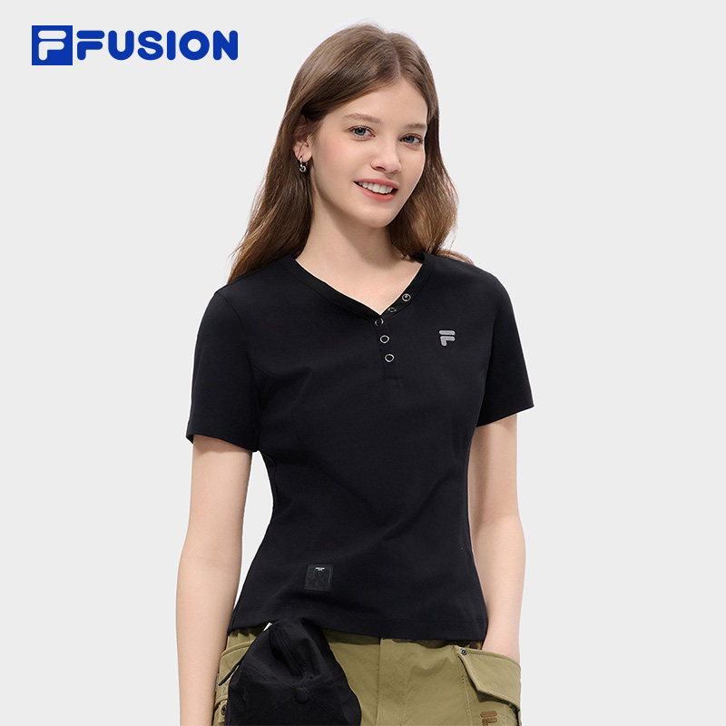 为您提供商品休闲修身 FILA V领T恤 新款 2026夏季 FUSION斐乐潮牌女子针织短袖 衫的详细介绍,