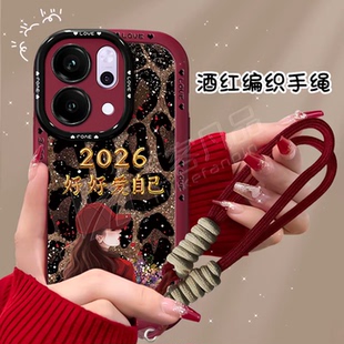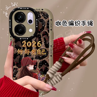 Reno15带手绳防摔手机套男女款 简约高级感Reno15c外壳网红爆款 豹纹2026好好爱自己适用OPPOReno14手机壳新款