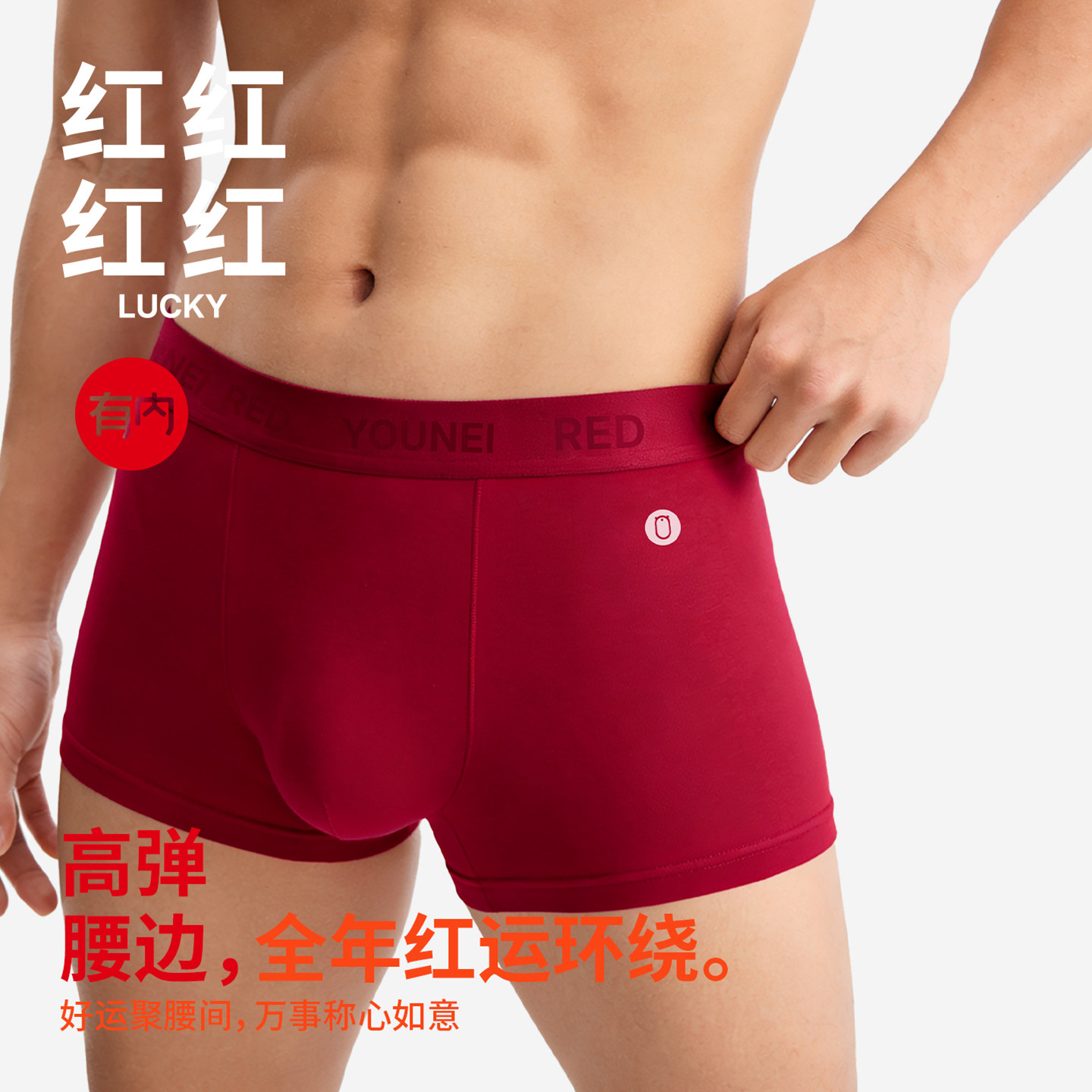 四角短裤 有内红色内裤 男士 马年纯棉裆a类本命年结婚新款 衩套装由