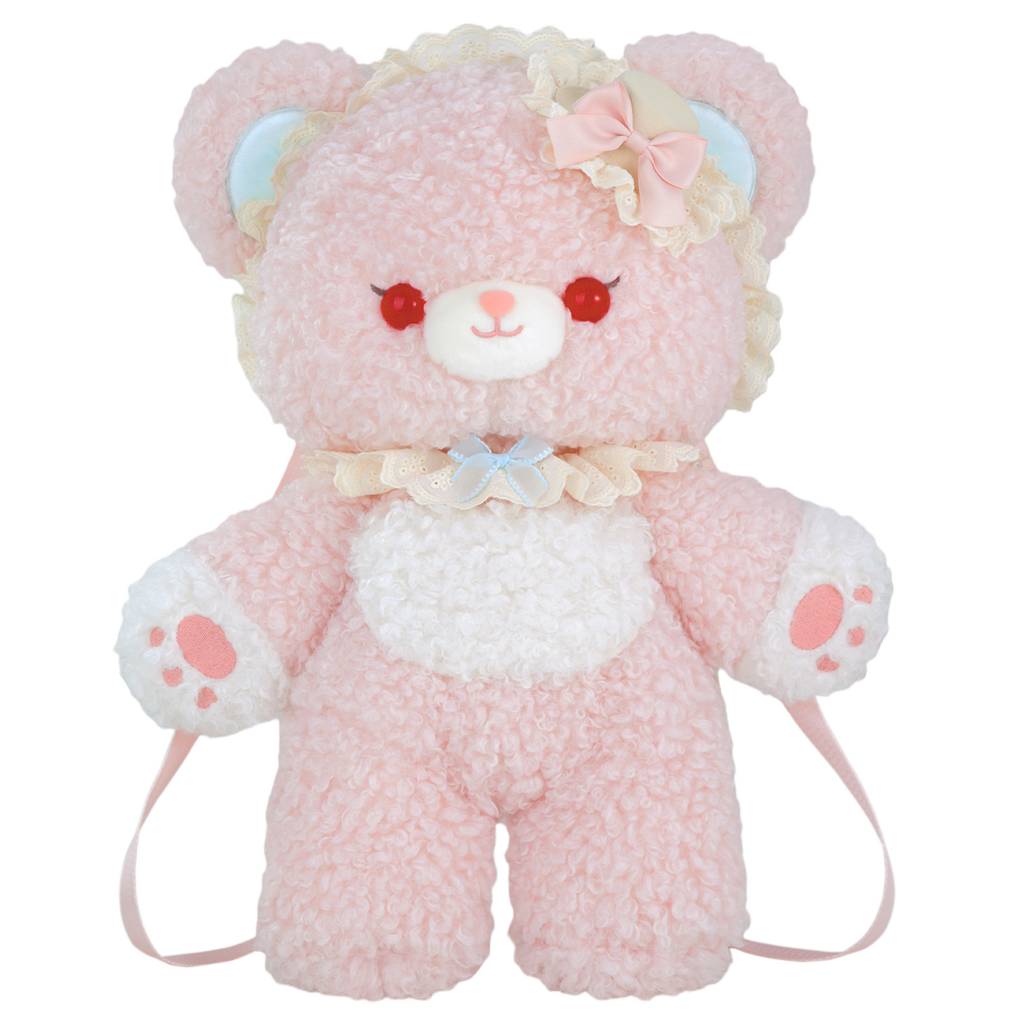 可爱粉色小熊lolita毛绒玩偶双肩背包包大脸书包礼物 小羊古力由