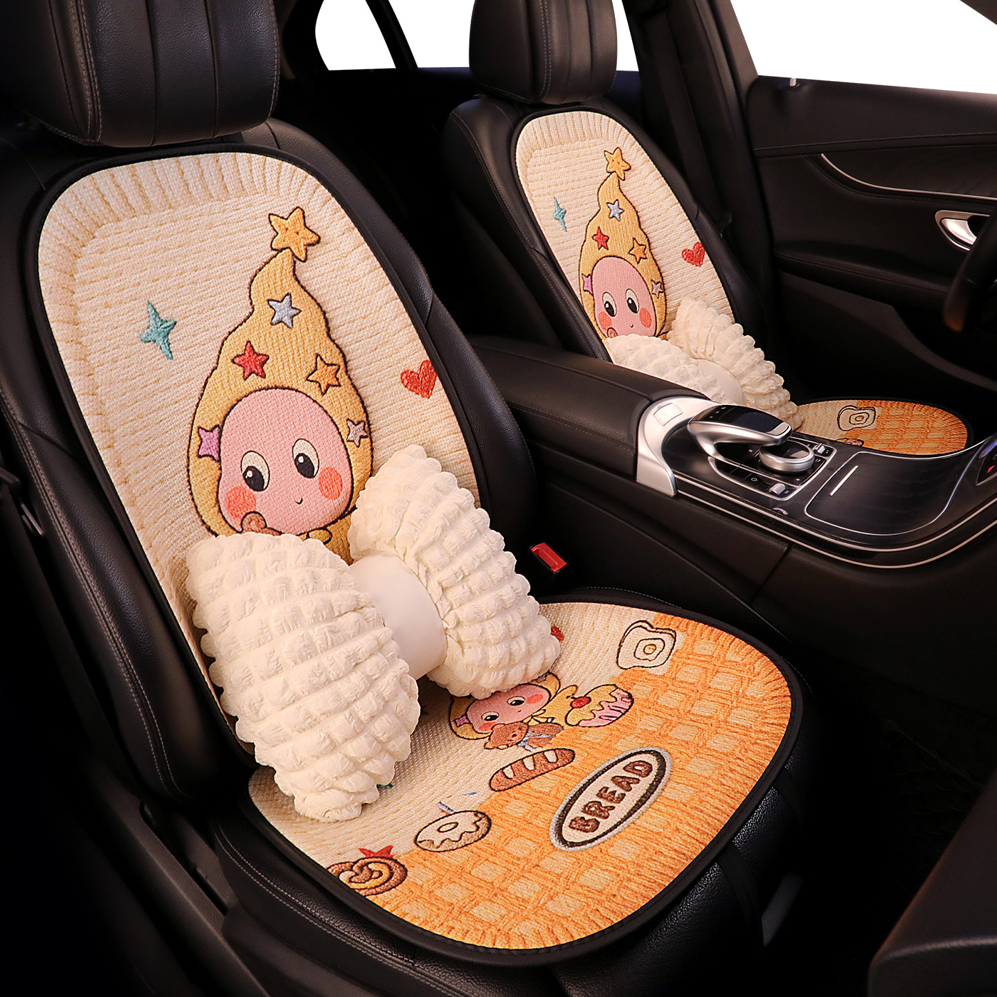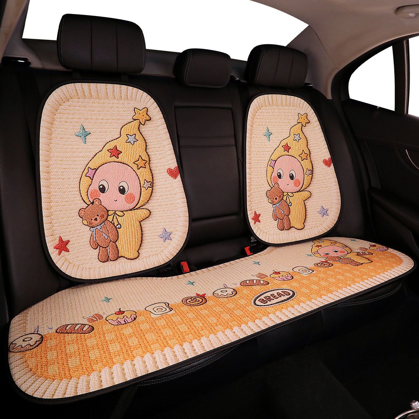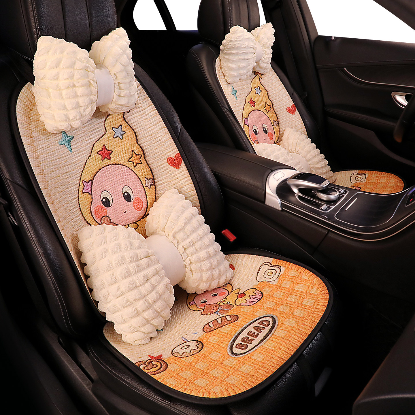可爱星星人汽车坐垫夏季 通用 透气亚麻座垫车内座椅套防滑座套四季由