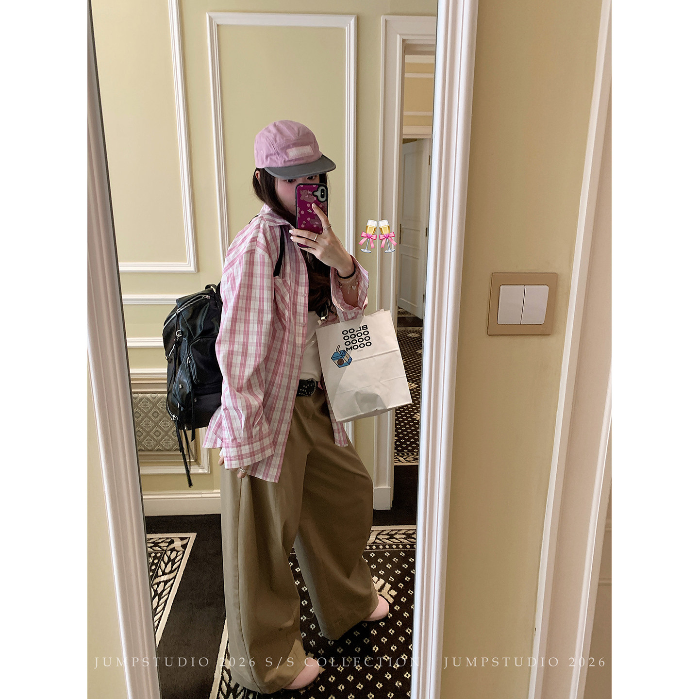 为您提供商品衬衫 女春夏宽松显瘦减龄百搭衬衣 慵懒竖条格纹翻领长袖 草莓跳的详细介绍,