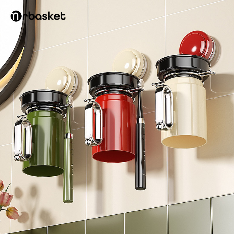 卫生间磁吸漱口杯免打孔倒挂沥洗漱杯收纳架 吸盘牙刷置物架壁挂式由