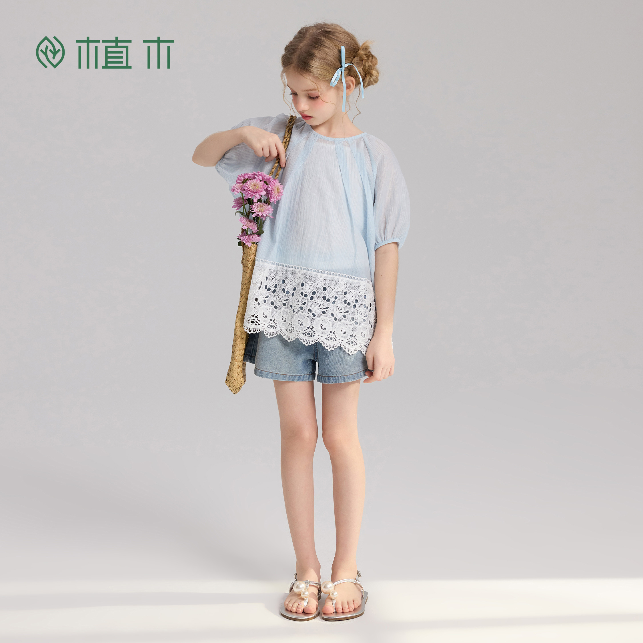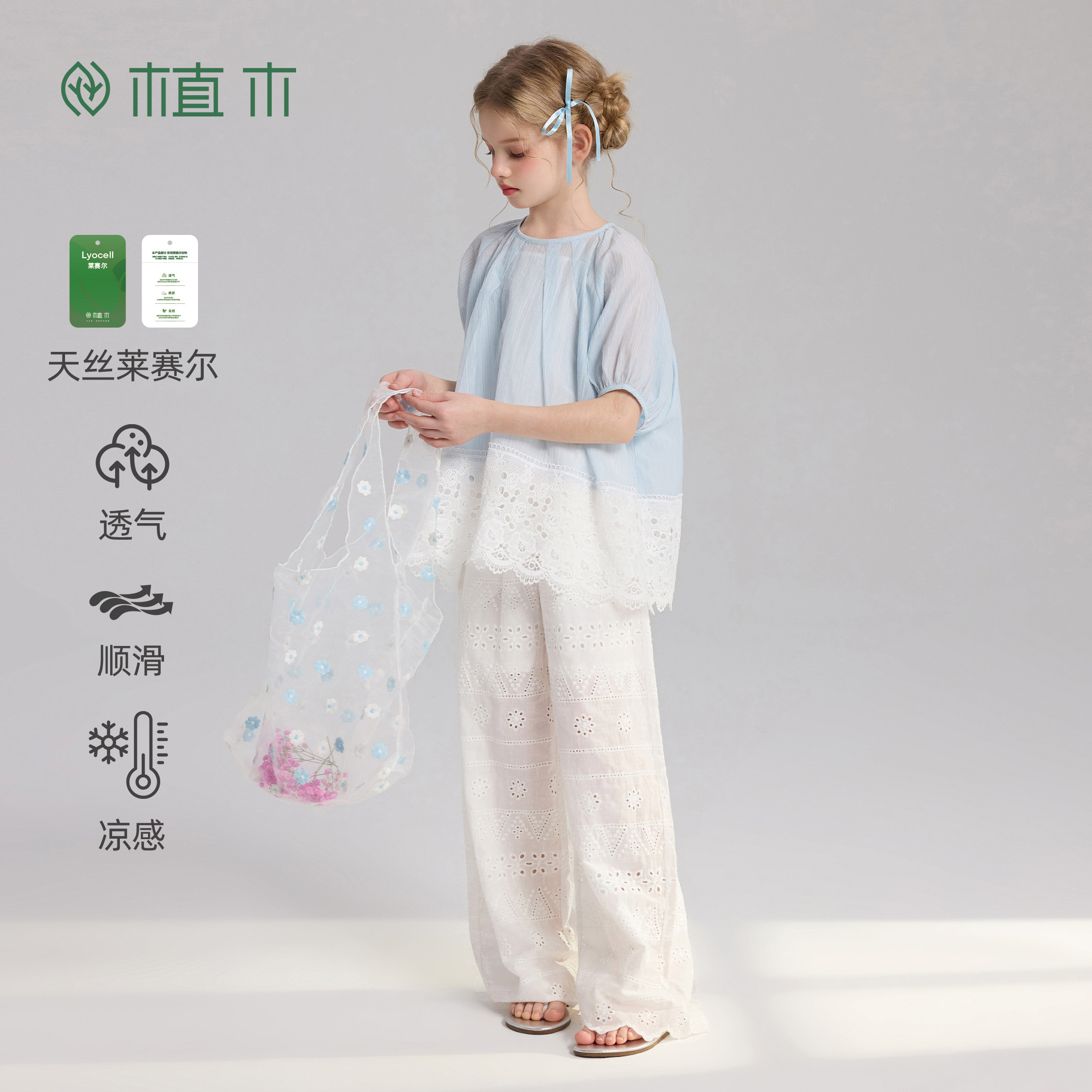 为您提供商品镂空泡泡袖 植木 边 2026夏季 新款 女童上衣 风过袖 莱赛尔透气的详细介绍,