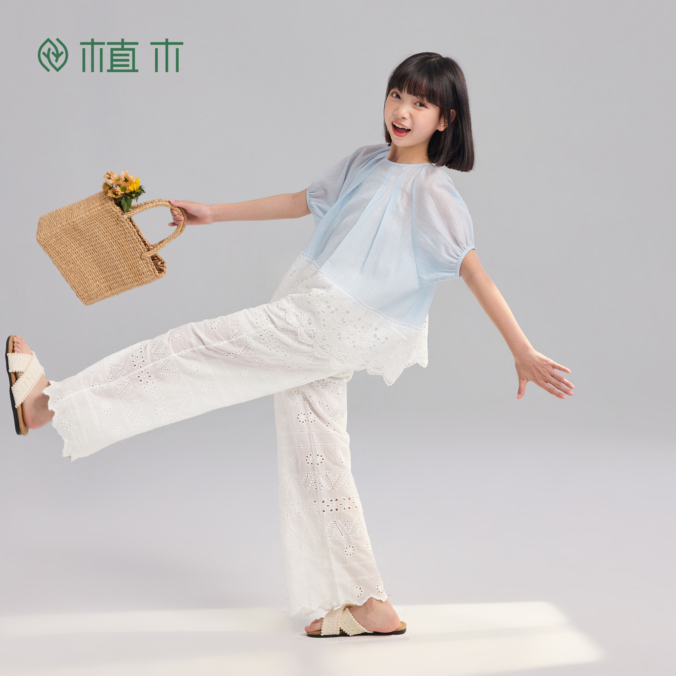 镂空泡泡袖 植木 边 2026夏季 新款 女童上衣 风过袖 莱赛尔透气由