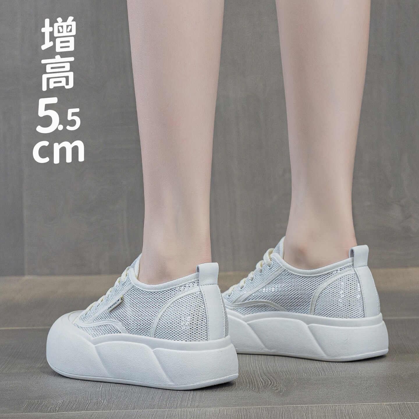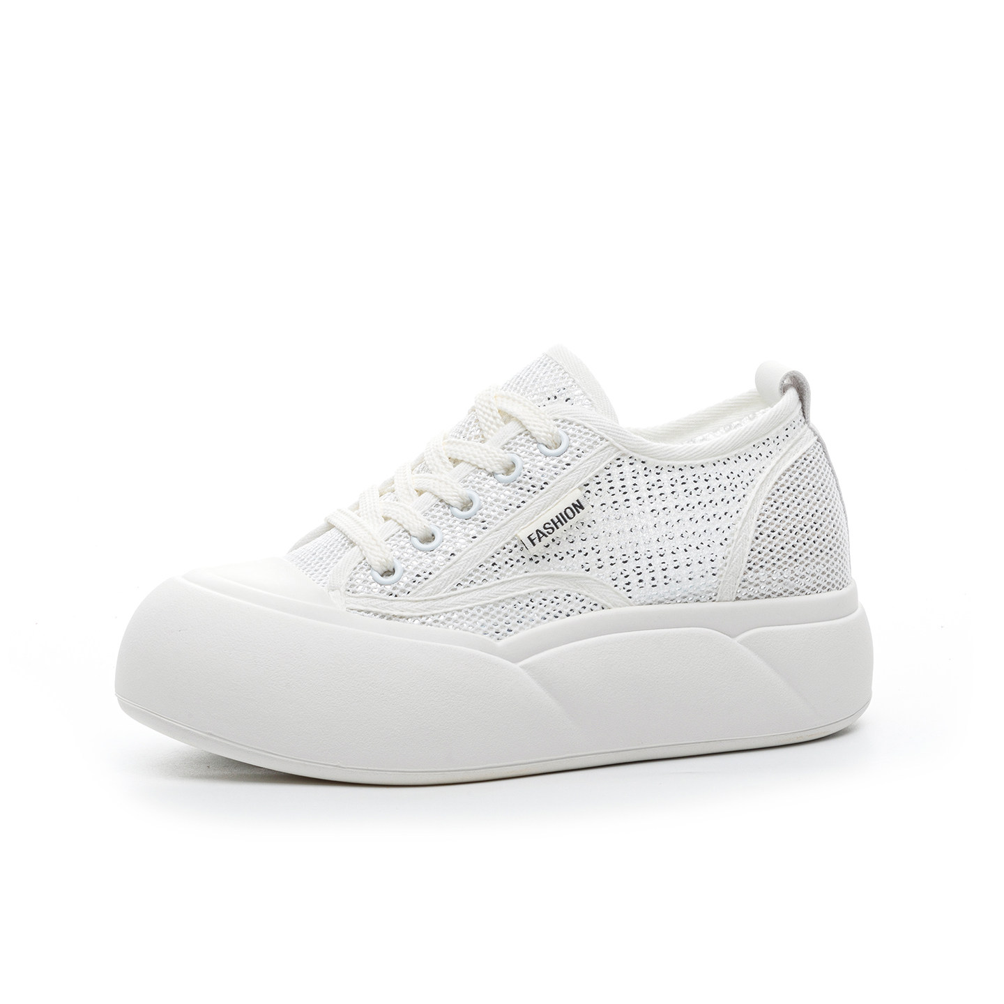 丑萌大头网面小白鞋 小码 女夏透气松糕厚底系带贝壳头面包鞋
