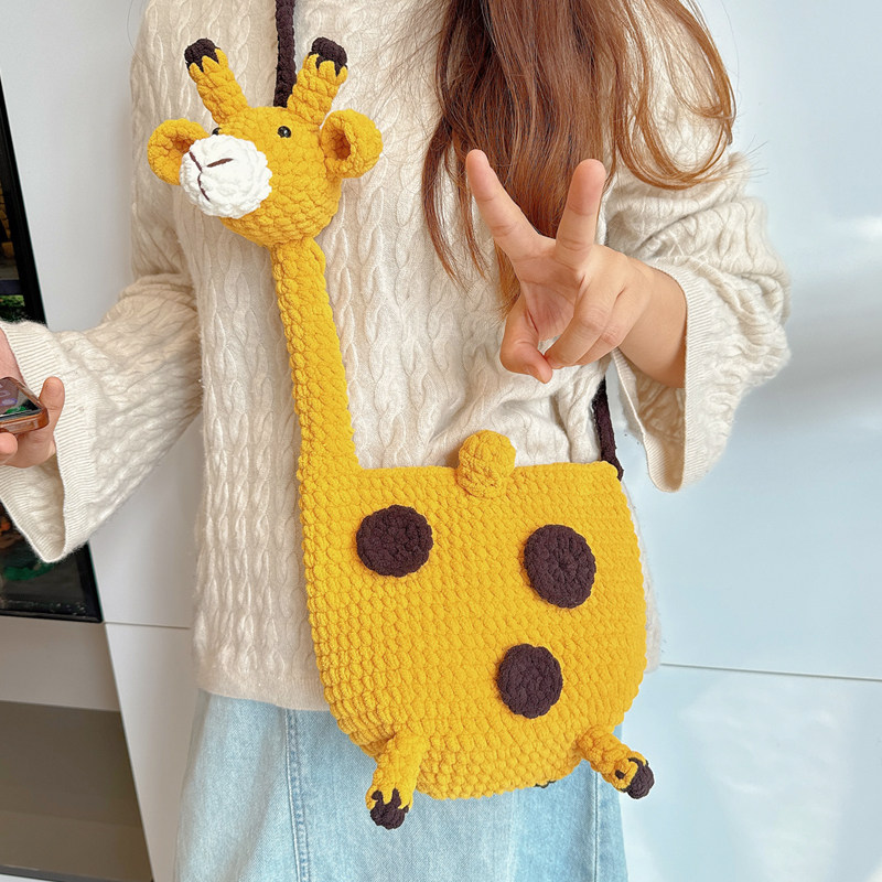 手工钩织长颈鹿毛线编织包DIY材料包儿童斜挎包钩针玩偶礼物冰条