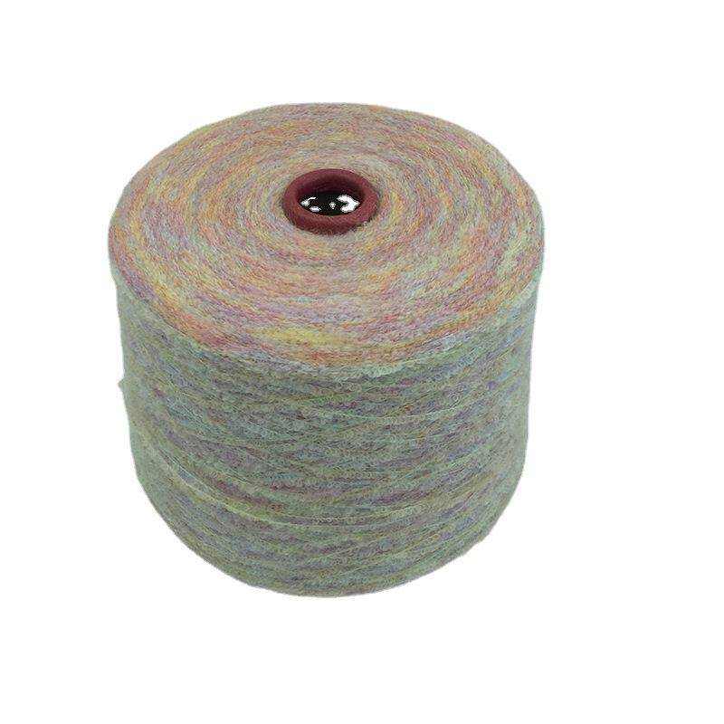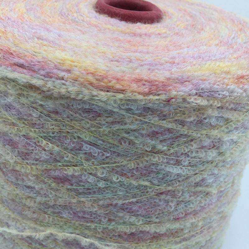 色纱7支渐变圈圈纱线12羊毛17尼龙69腈纶2氨纶特色线段染圈圈线由