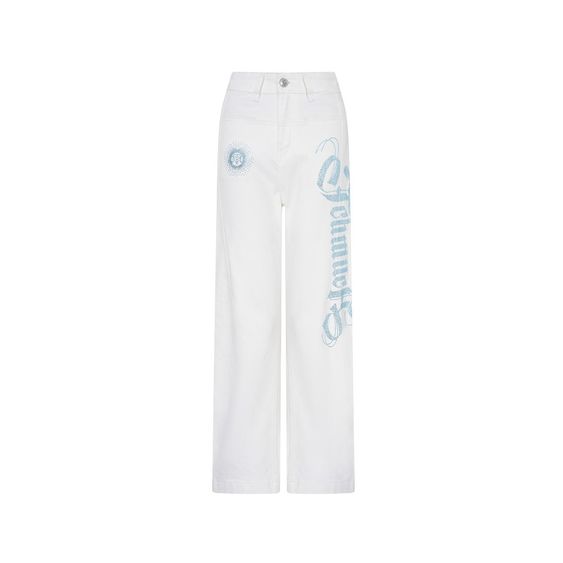 高腰显瘦直筒白色牛仔裤 T75C20E5156 新款 TCH字母烫钻2025春季