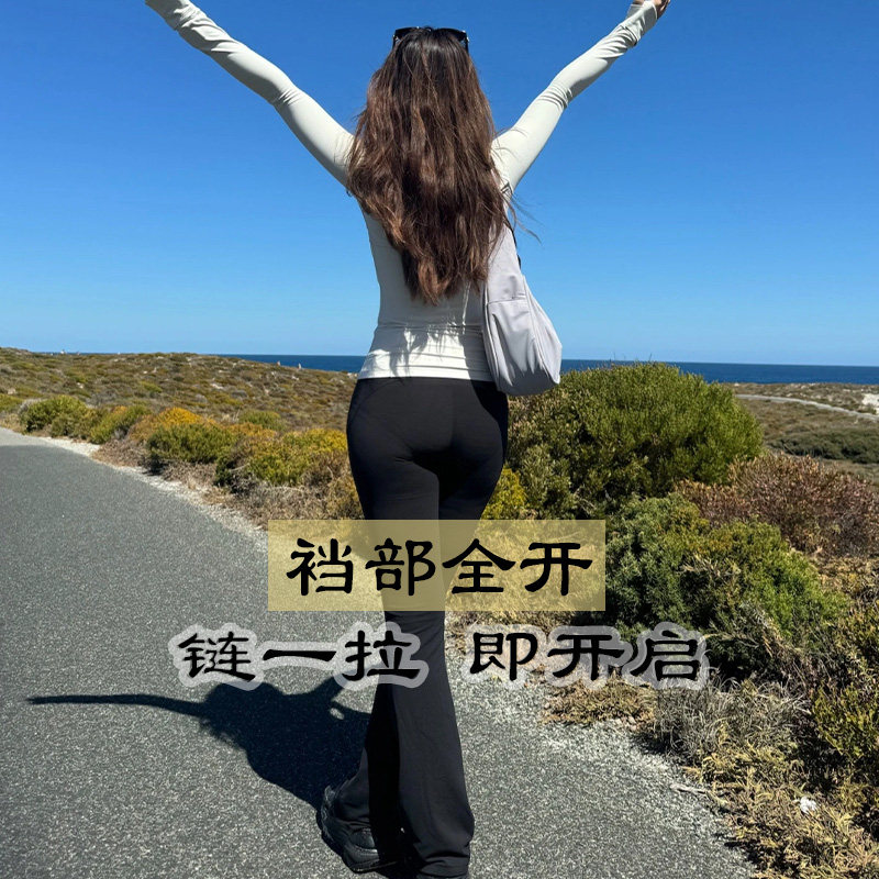 开裆瑜伽裤 隐形全拉链微喇鲨鱼裤 免穿脱方便裤 女户外免穿脱打底裤