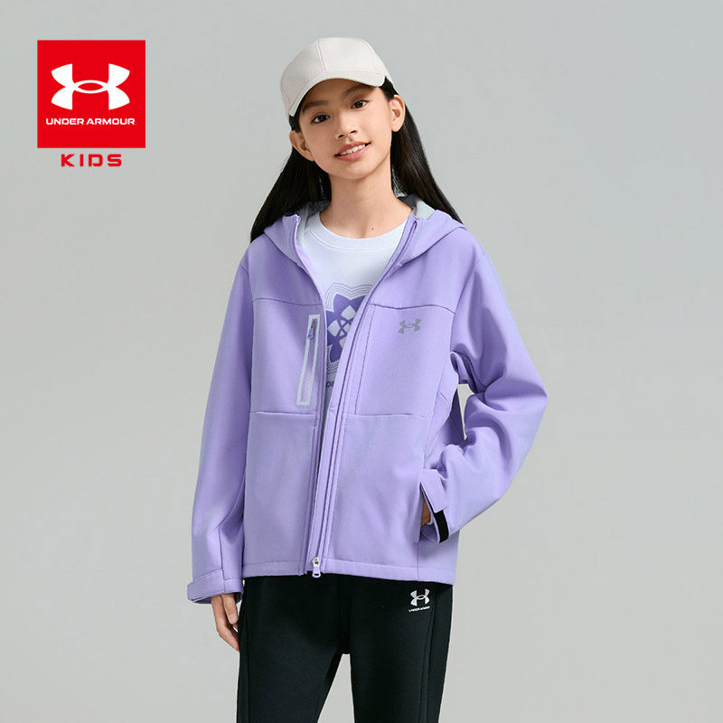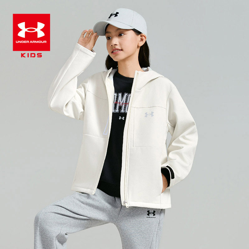 安德玛童装 儿童连帽外套防风梭织加厚加绒保暖休闲夹克 秋冬25新款