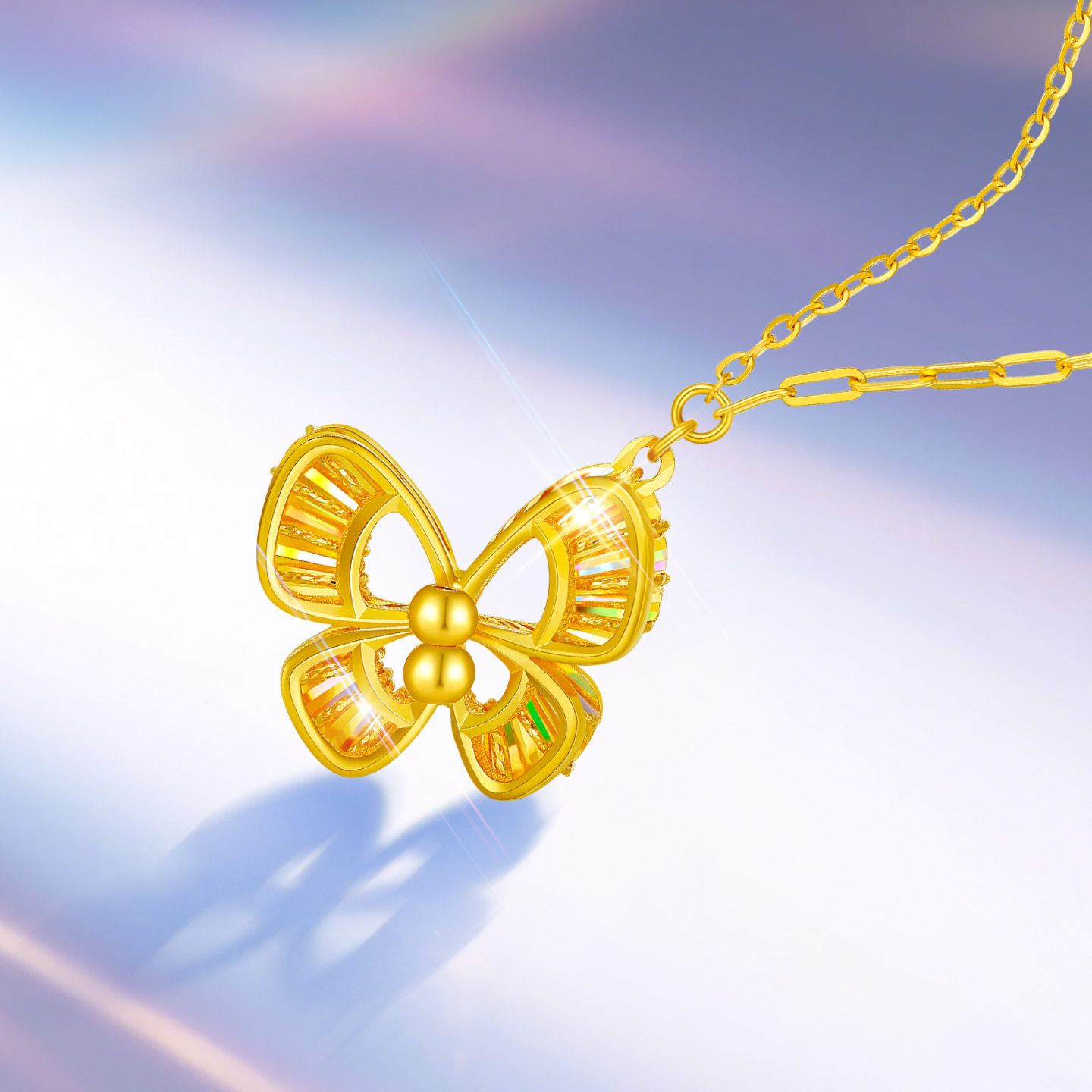 金至尊闪醉金黄金蝴蝶项链硬足金炫彩幻彩金锁骨链生日礼物送女友