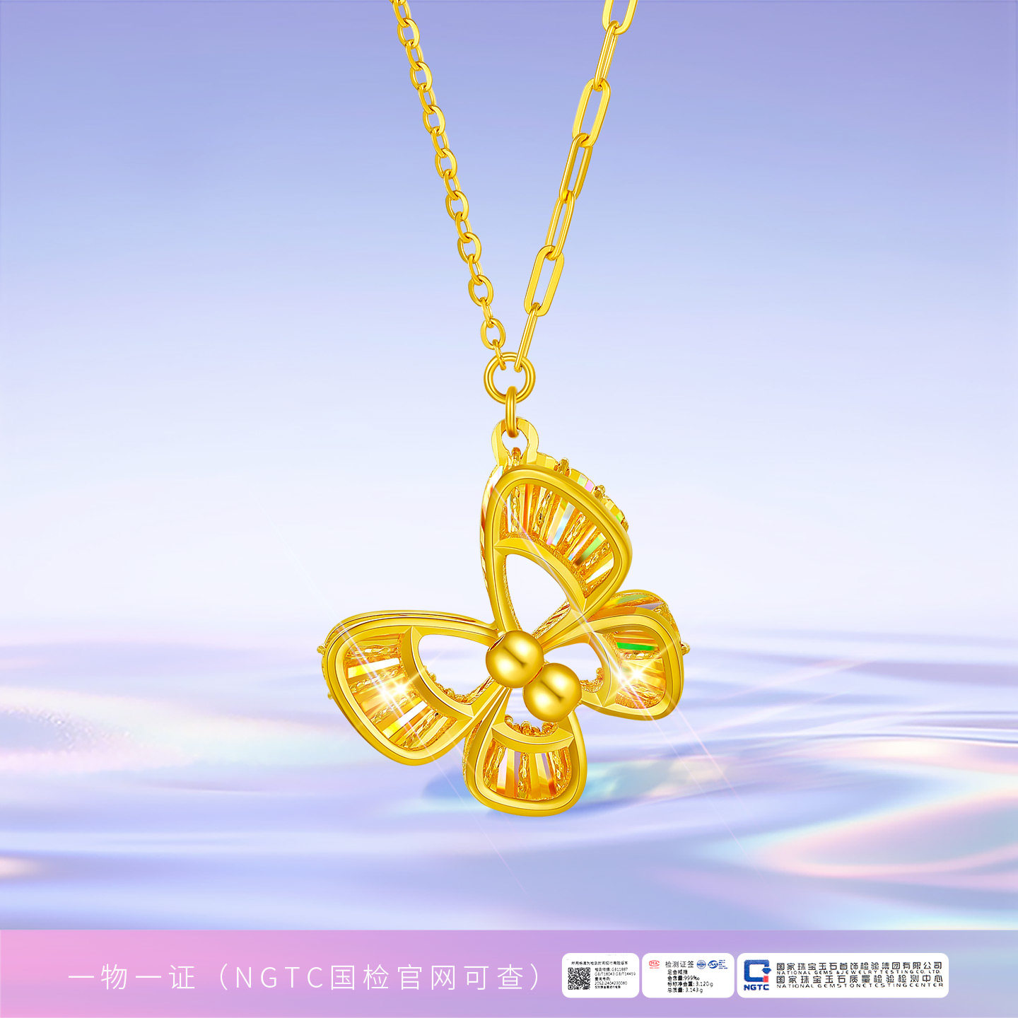 金至尊闪醉金黄金蝴蝶项链硬足金炫彩幻彩金锁骨链生日礼物送女友由