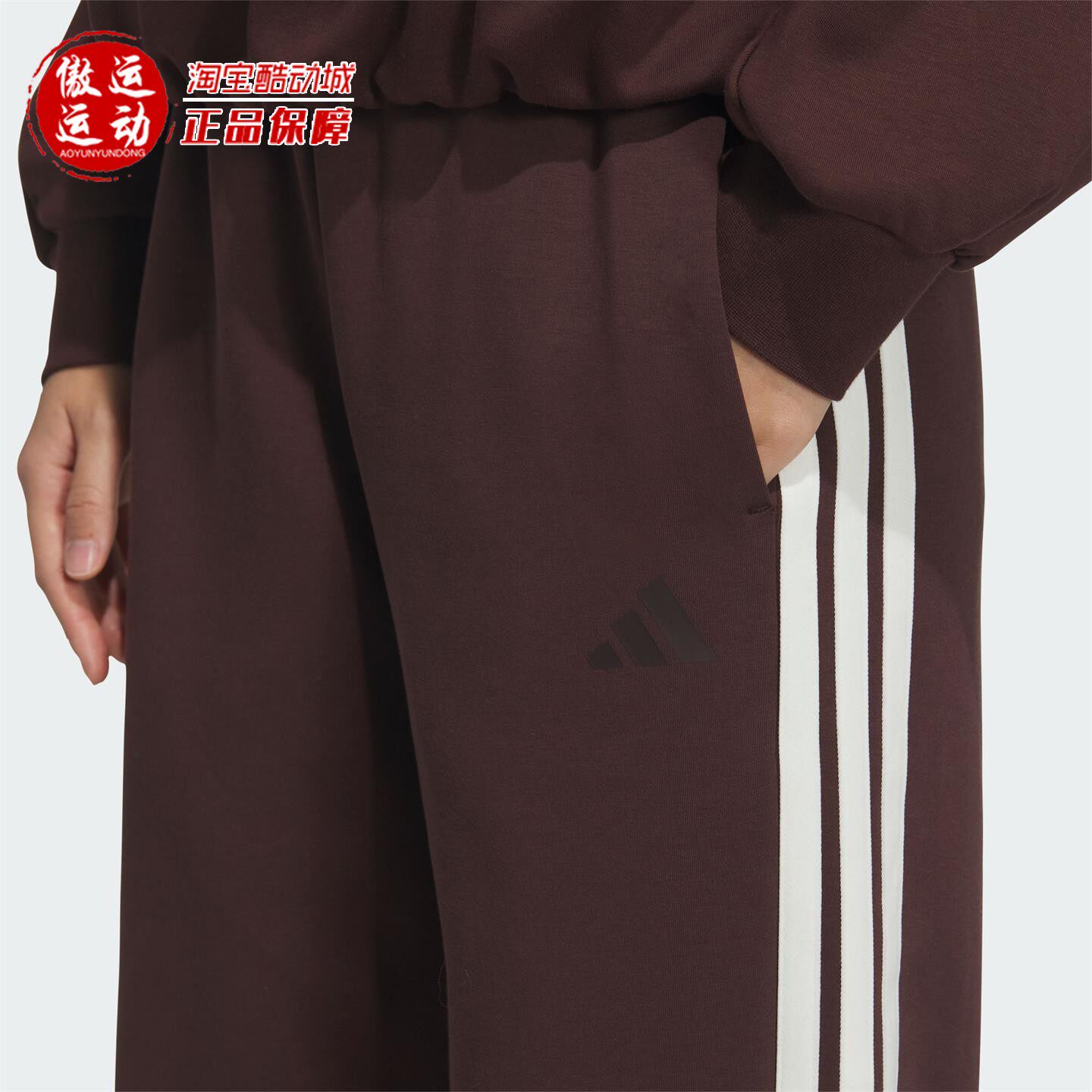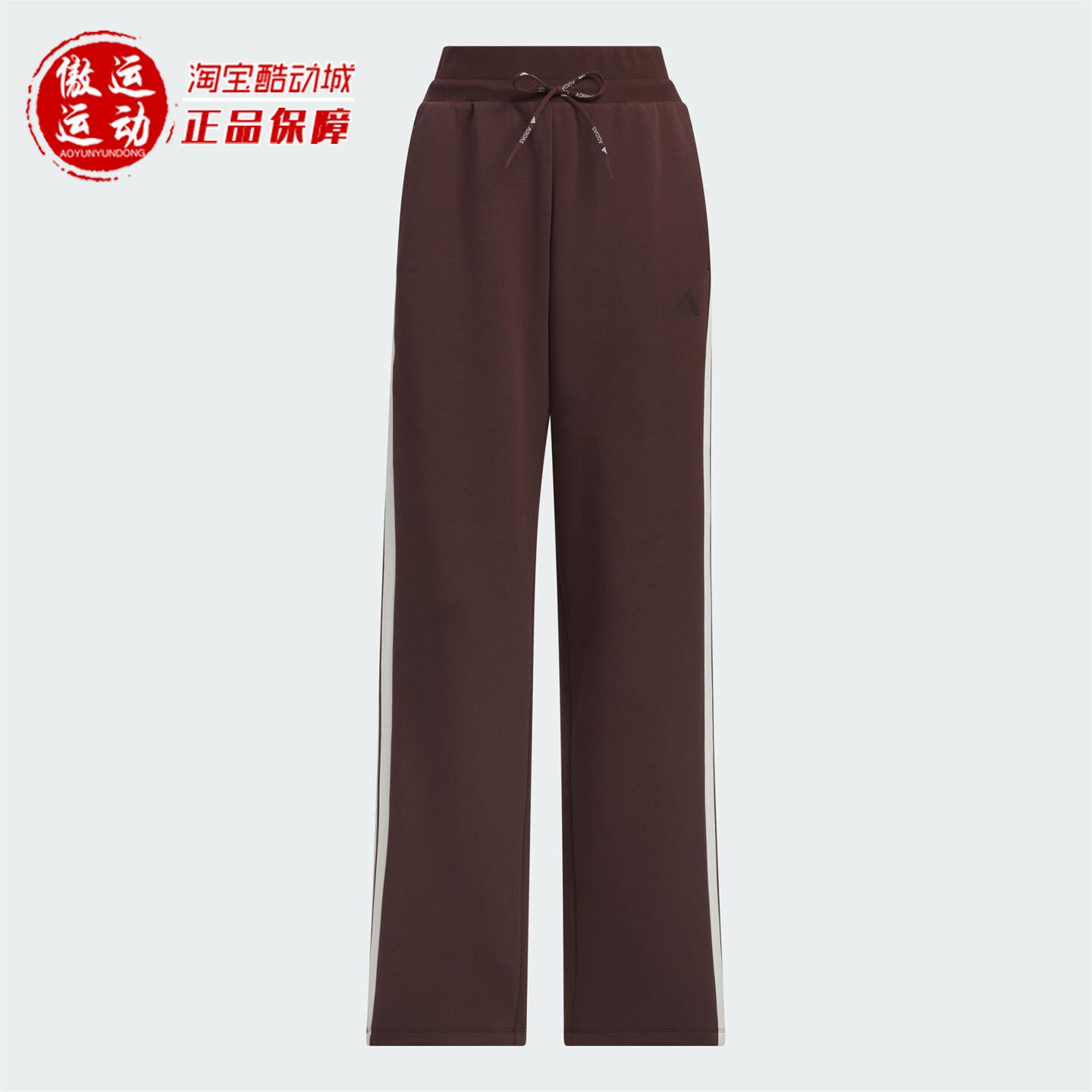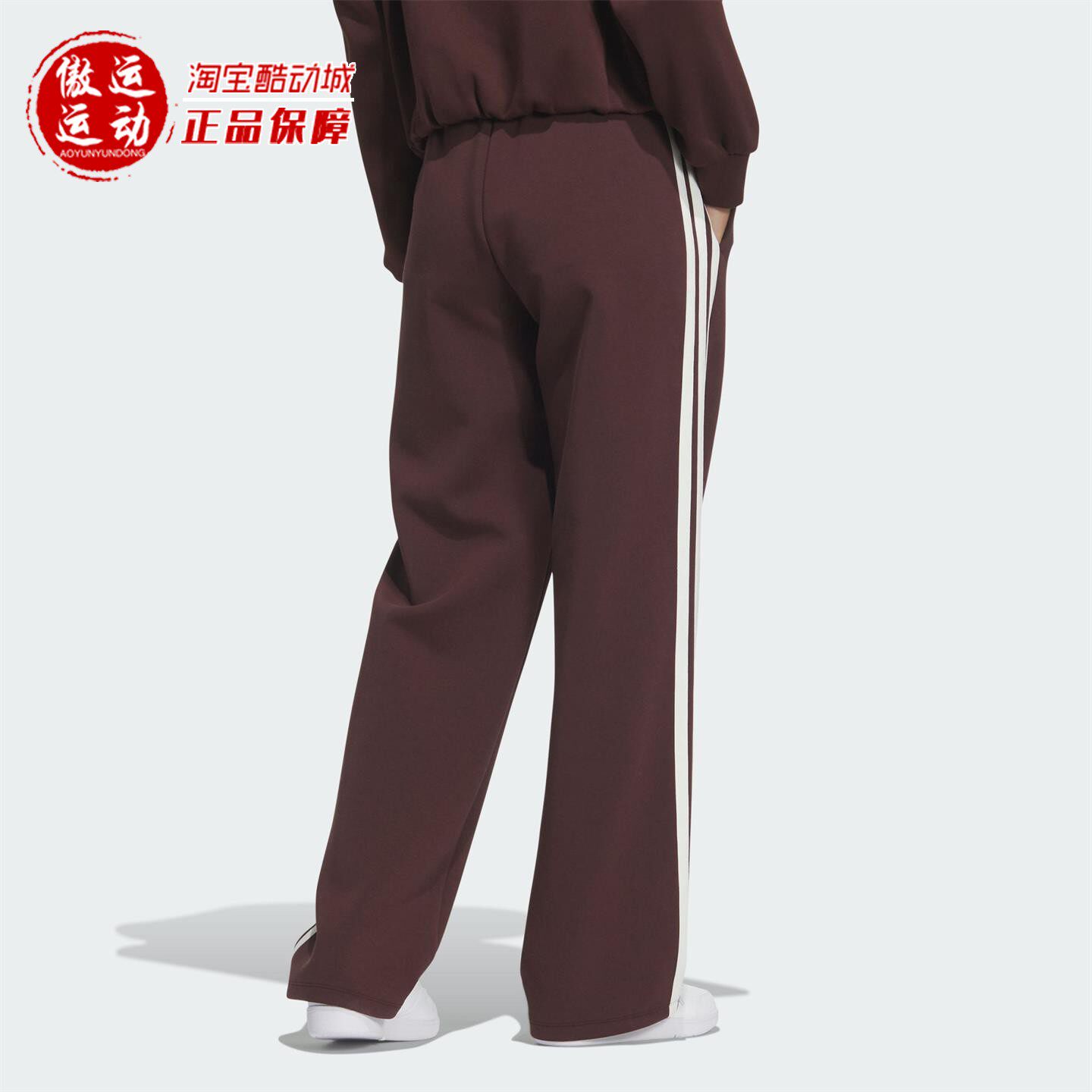 Adidas阿迪达斯女子条纹直筒运动休闲裤 2025冬KB7588 双面针织长裤