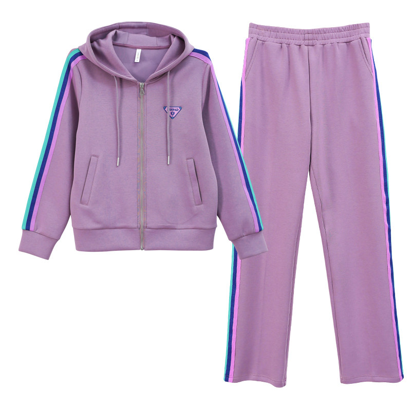 女2026春秋连帽拉链显瘦洋气减龄长袖 撞色两件套 休闲运动套装 时尚由