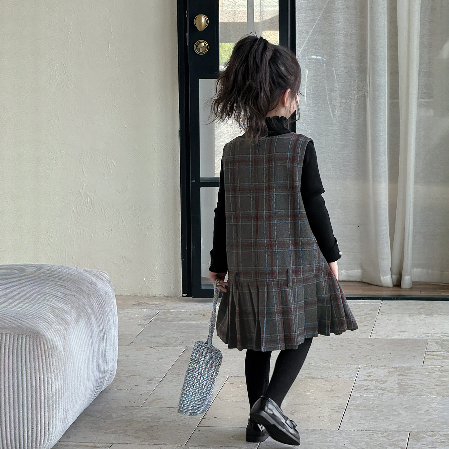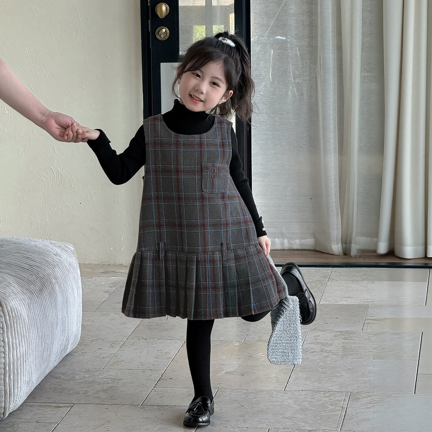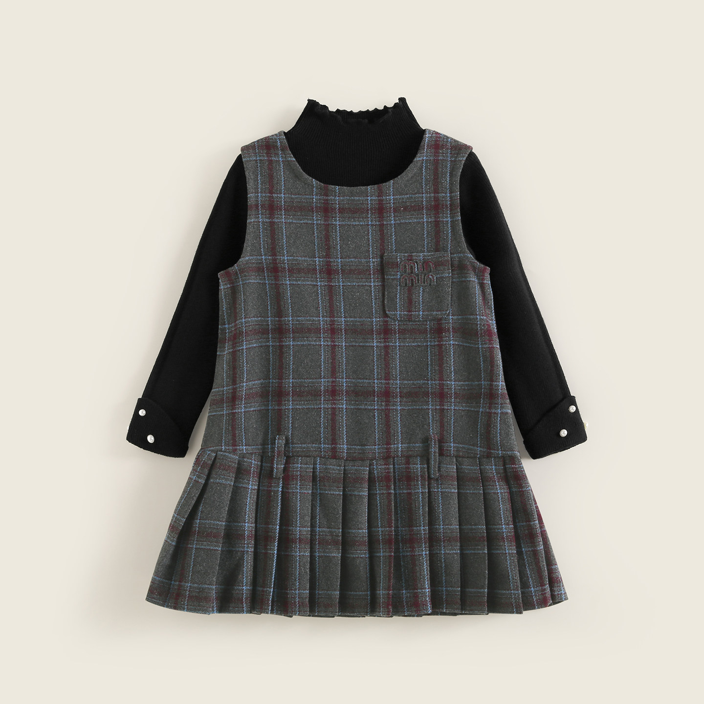 洋气儿童半高领打底衫 加绒裙子两件套 2026秋冬新款 女童背心裙套装