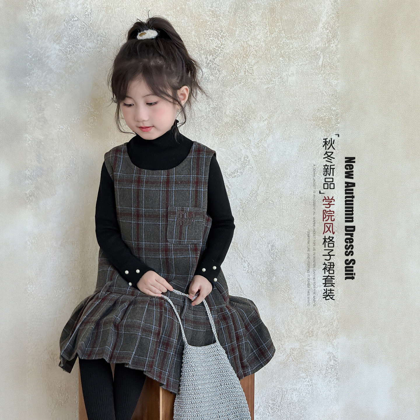 为您提供商品洋气儿童半高领打底衫 加绒裙子两件套 2026秋冬新款 女童背心裙套装的详细介绍,