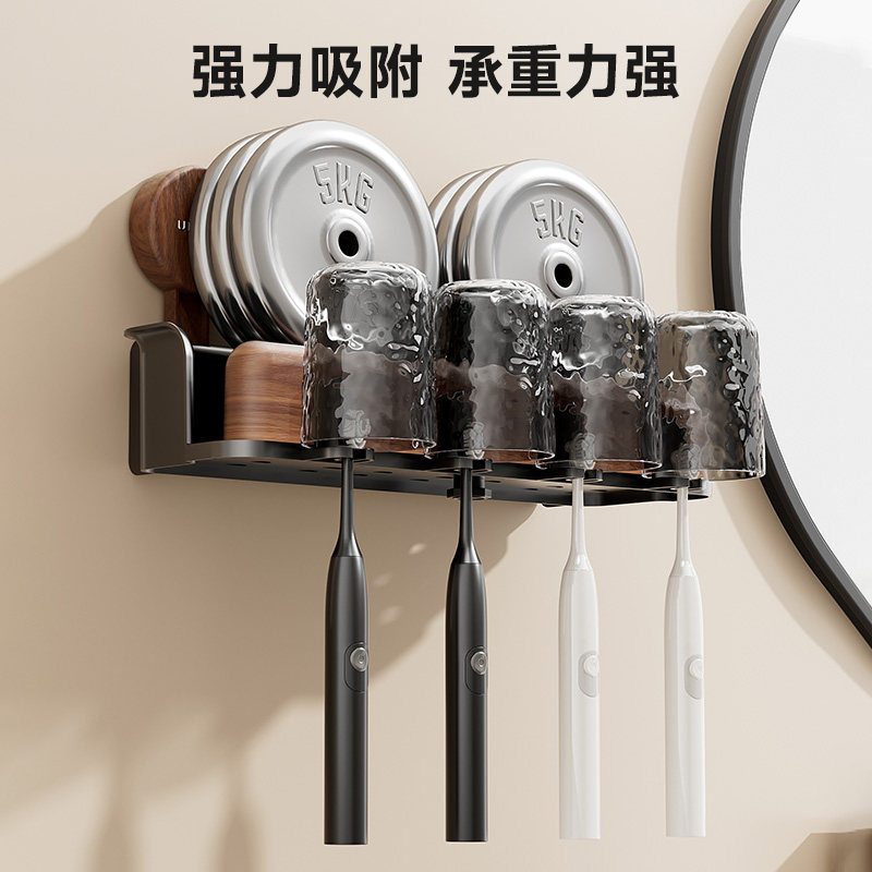 免打孔卫生间牙具座牙膏收纳浴室 牙刷牙杯壁挂置物架电动牙刷套装