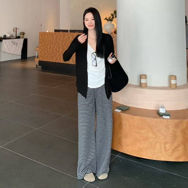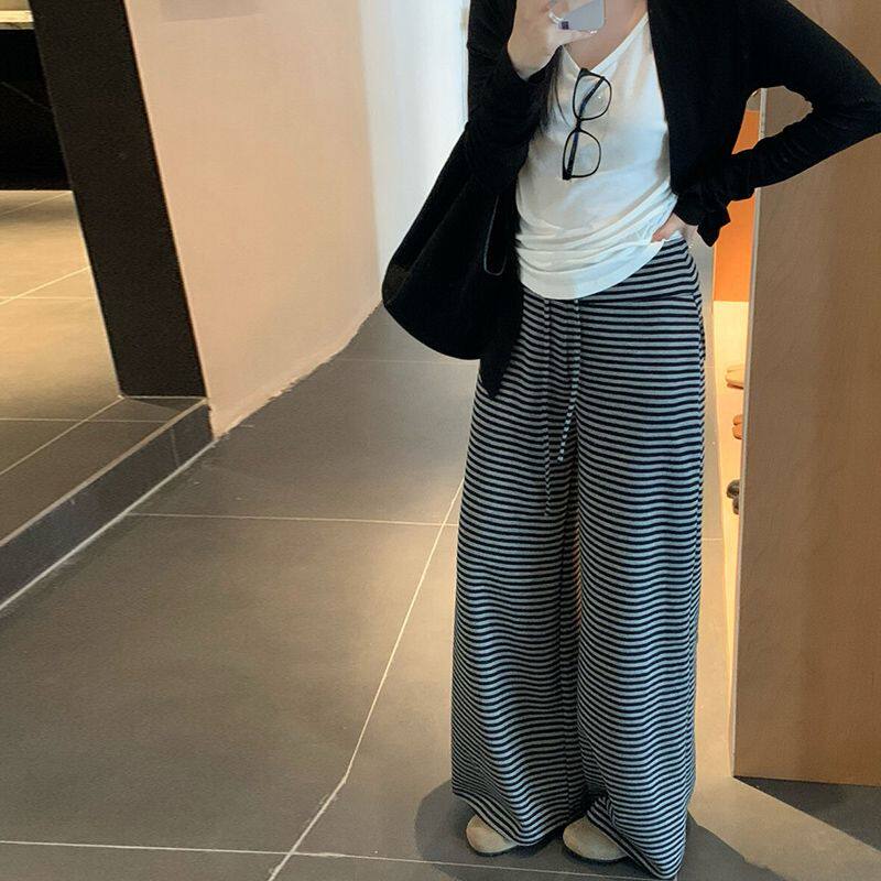 2026新款 孕妇条纹阔腿裤 子春夏季 薄款 外穿慵懒风托腹直筒拖地长裤