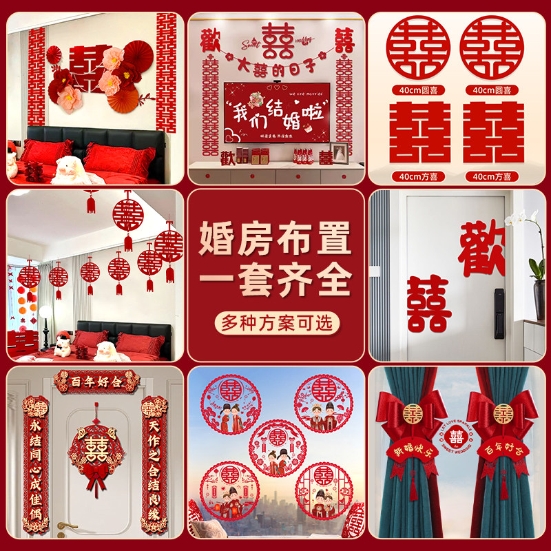 婚房布置套装 饰男方女方卧室客厅喜字拉花婚庆用品大全 结婚全套装