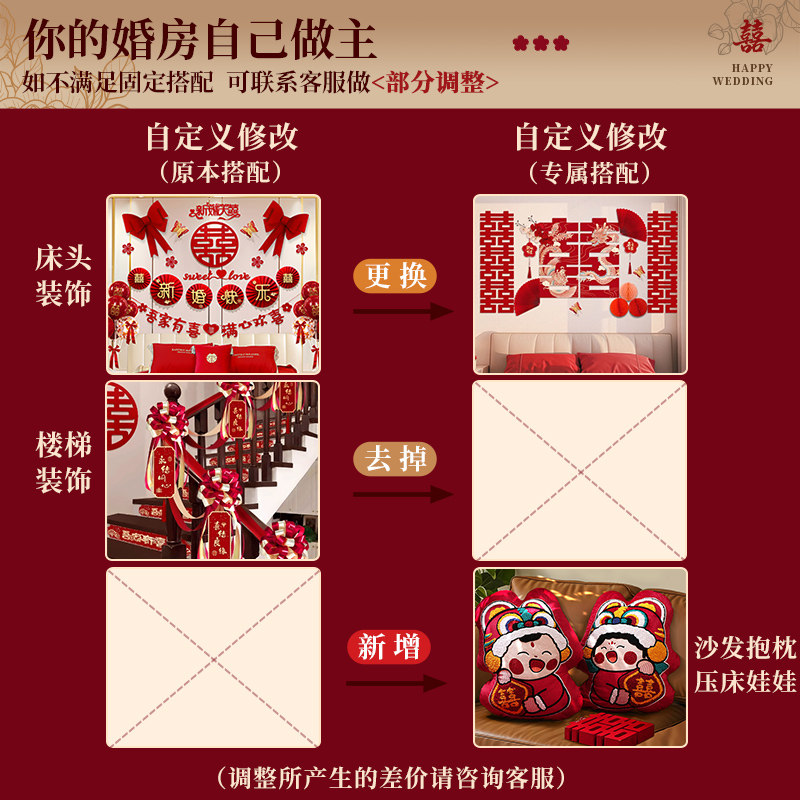 婚房布置套装 饰酒店新房间拉花 男方婚礼结婚女方闺房卧室床头装