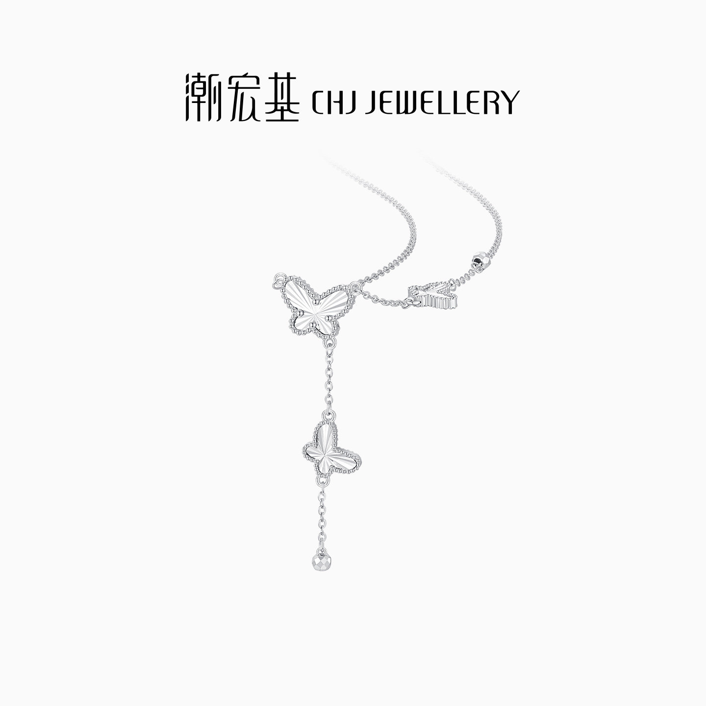 潮宏基铂雅蝴蝶铂金项链PT950套链颈饰坠链Y型链锁骨链生日礼物