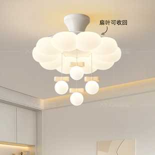 餐厅现代简约奶油风卧室静音吸顶一体吊扇灯具 隐形风扇灯2026新款由