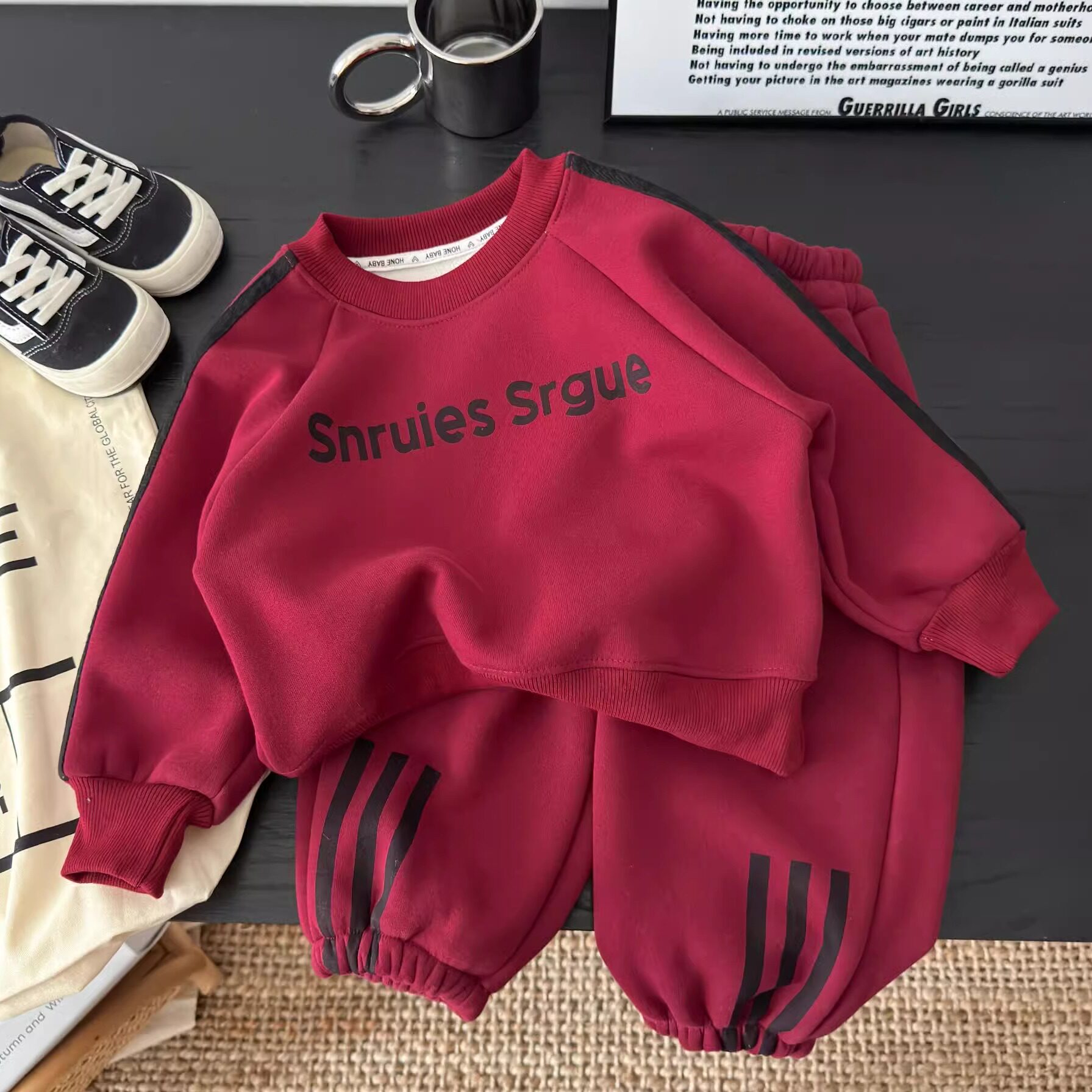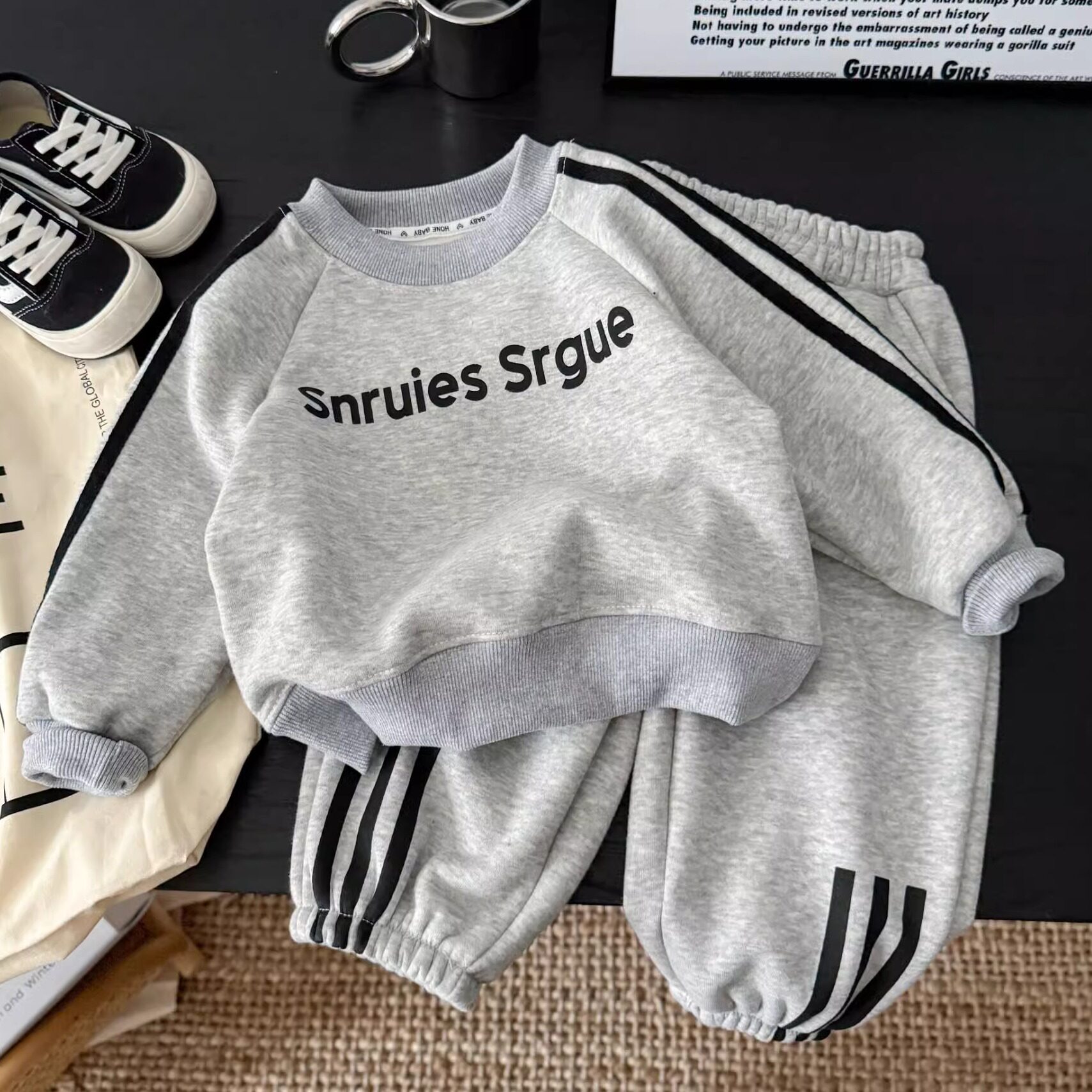韩版 洋气男童女童宝宝保暖休闲运动两件套 秋冬季 儿童加绒卫衣套装