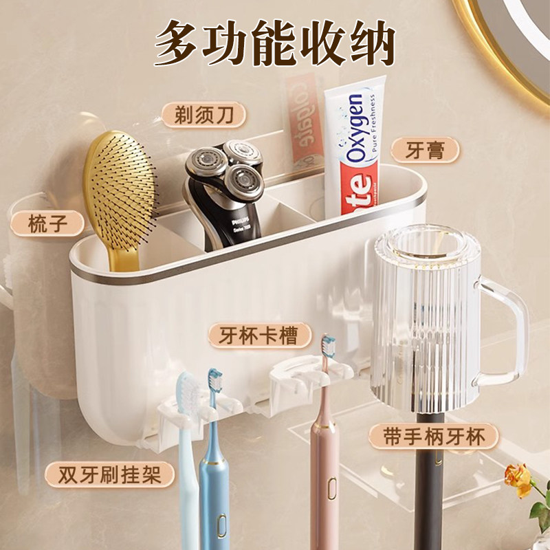 免打孔卫生间牙具座牙膏收纳浴室 牙刷牙杯壁挂置物架电动牙刷套装