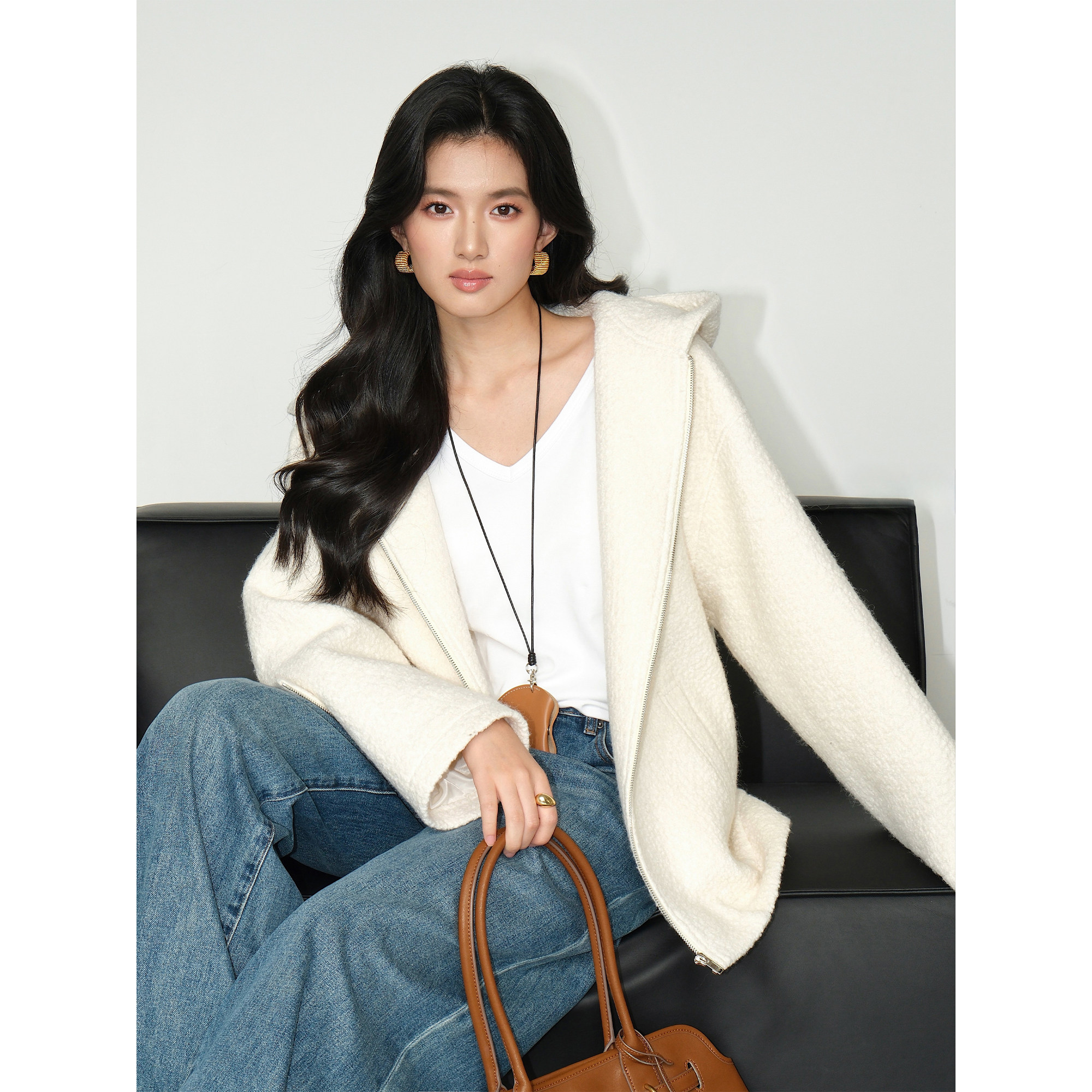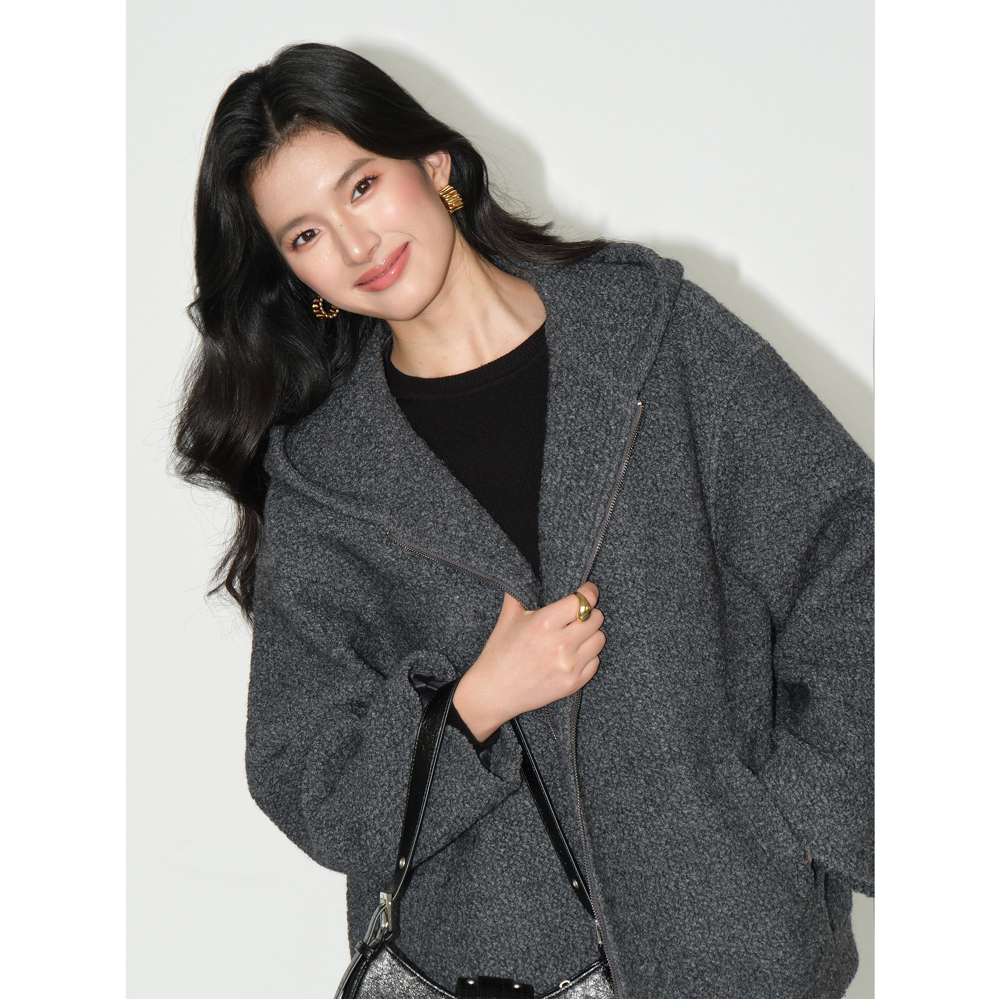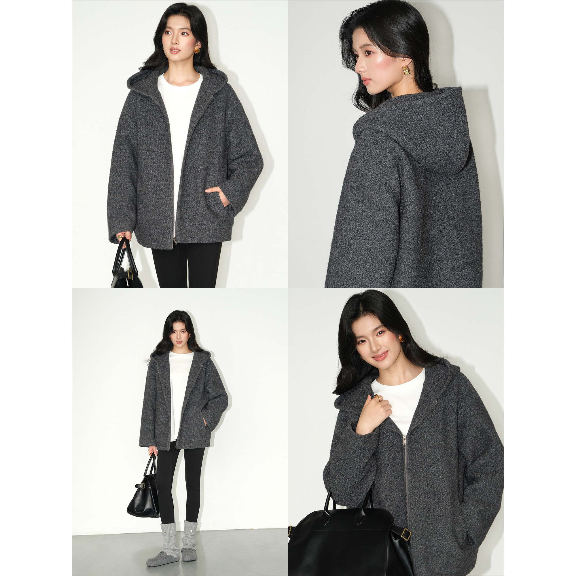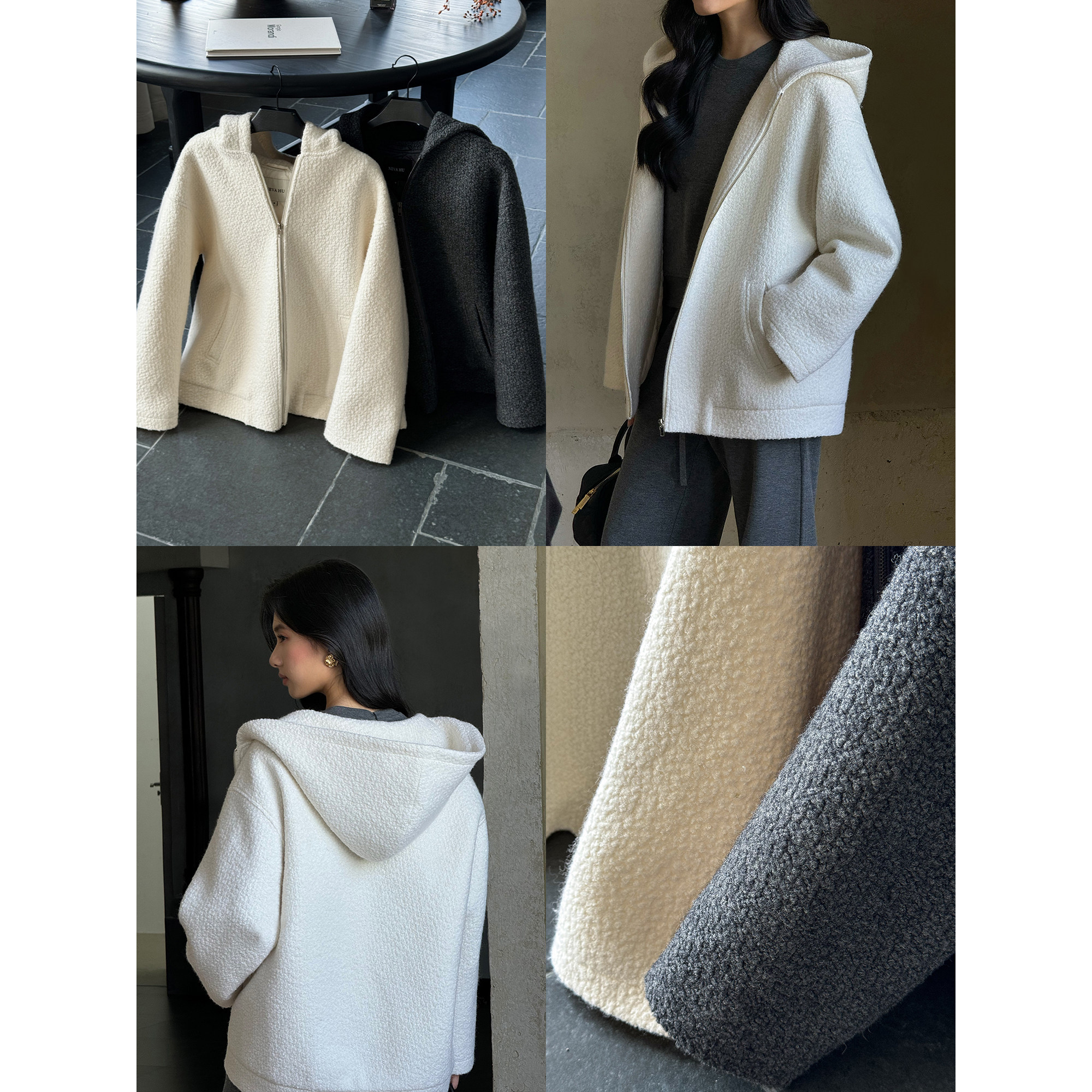 现货7折 宽松连帽毛呢外套女秋冬加厚夹棉羊毛拉链上衣 NEVA由