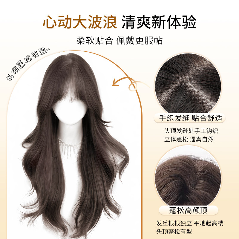为您提供商品不用戴发网假发女片头顶增发量蓬松高颅顶遮白发长发大波浪假发片的详细介绍,