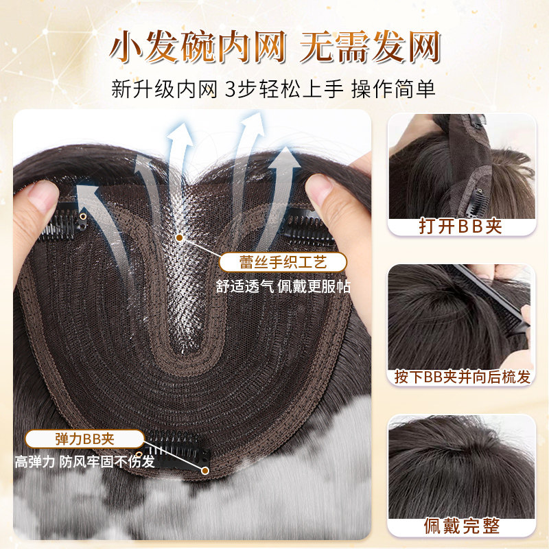 刘海片 高颅顶假发片女增发量蓬松真发遮头顶白发 双递针法式 美禾