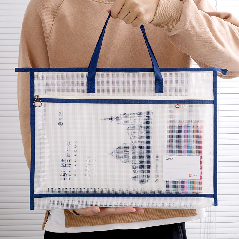 为您提供商品A4透明收纳袋学生补习美术袋防水加厚立体手提袋文件袋拉链式的详细介绍,