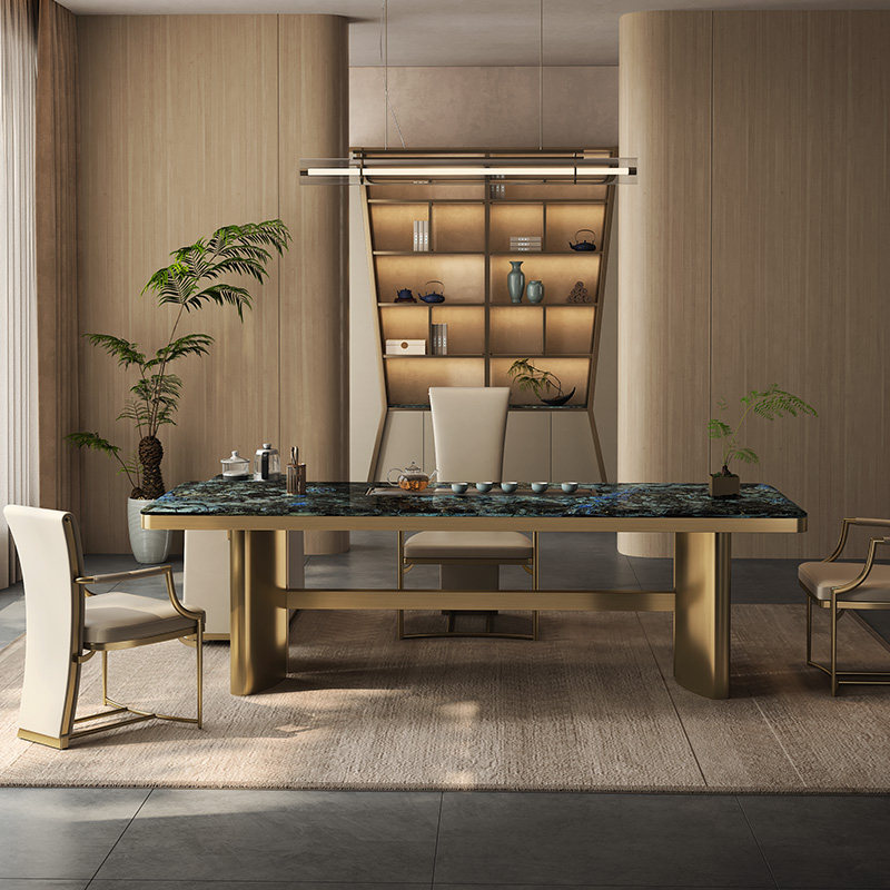 轻奢功夫茶桌书桌一体两用现代高级感办公室奢石茶台 Mobeier