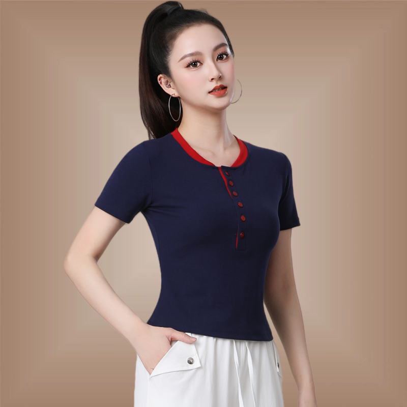 时尚 上衣团体运动健身操纯棉女士夏季 短袖 t恤跳舞衣服 广场舞新款由