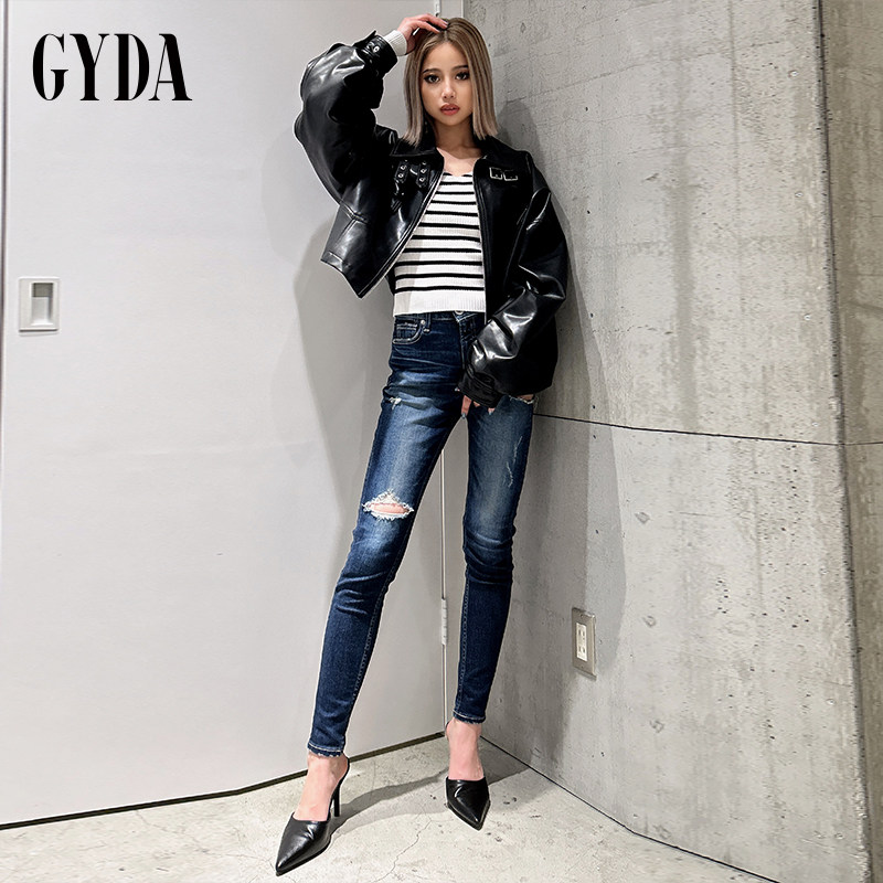 极繁女士仿皮革立领刺绣宽松短款 夹克0724501672 新品 GYDA2024秋季