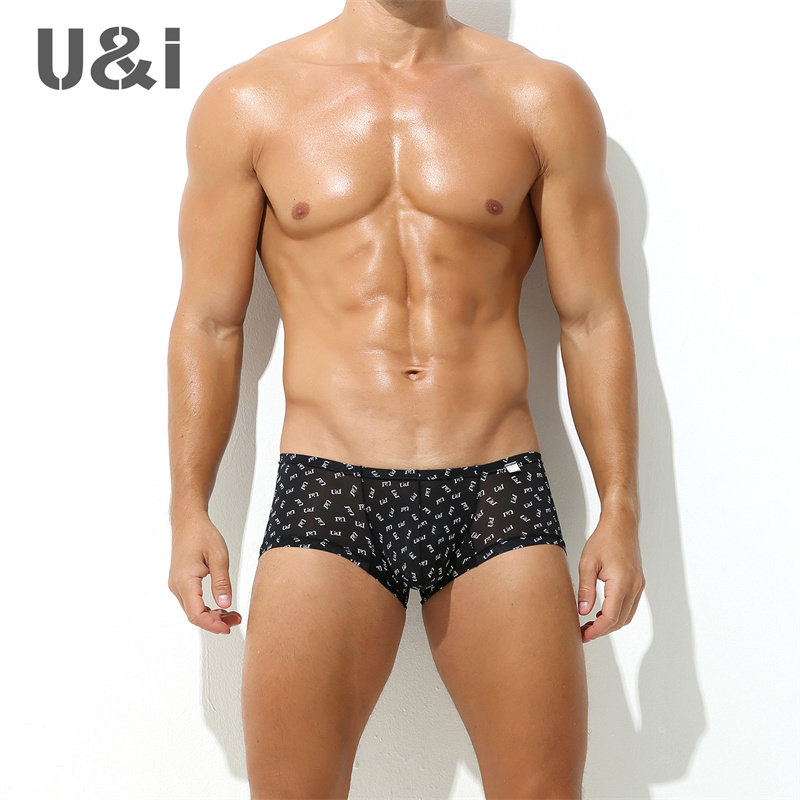 潮流圆点豹纹透气修身 U凸小平角 男低腰薄冰丝个性 U&I性感内裤