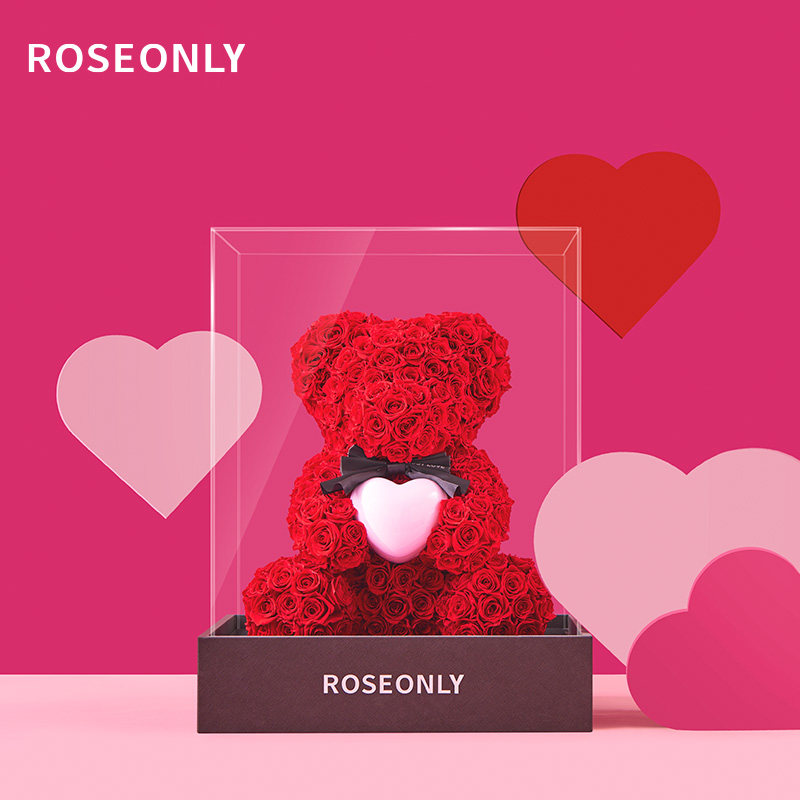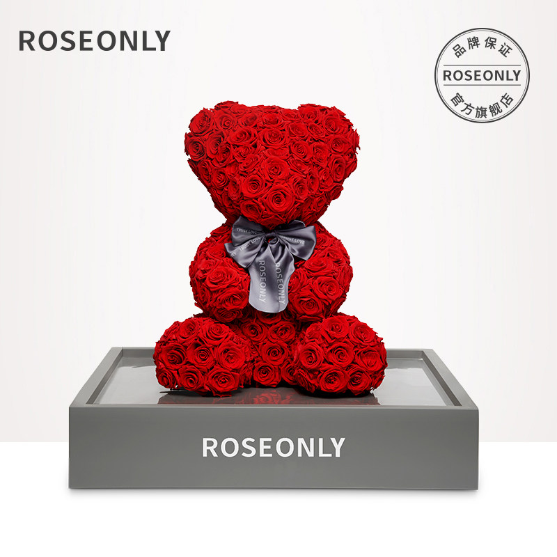 ROSEONLY诺誓高级定制永生花玫瑰熊送女友爱人生日情人节礼物由