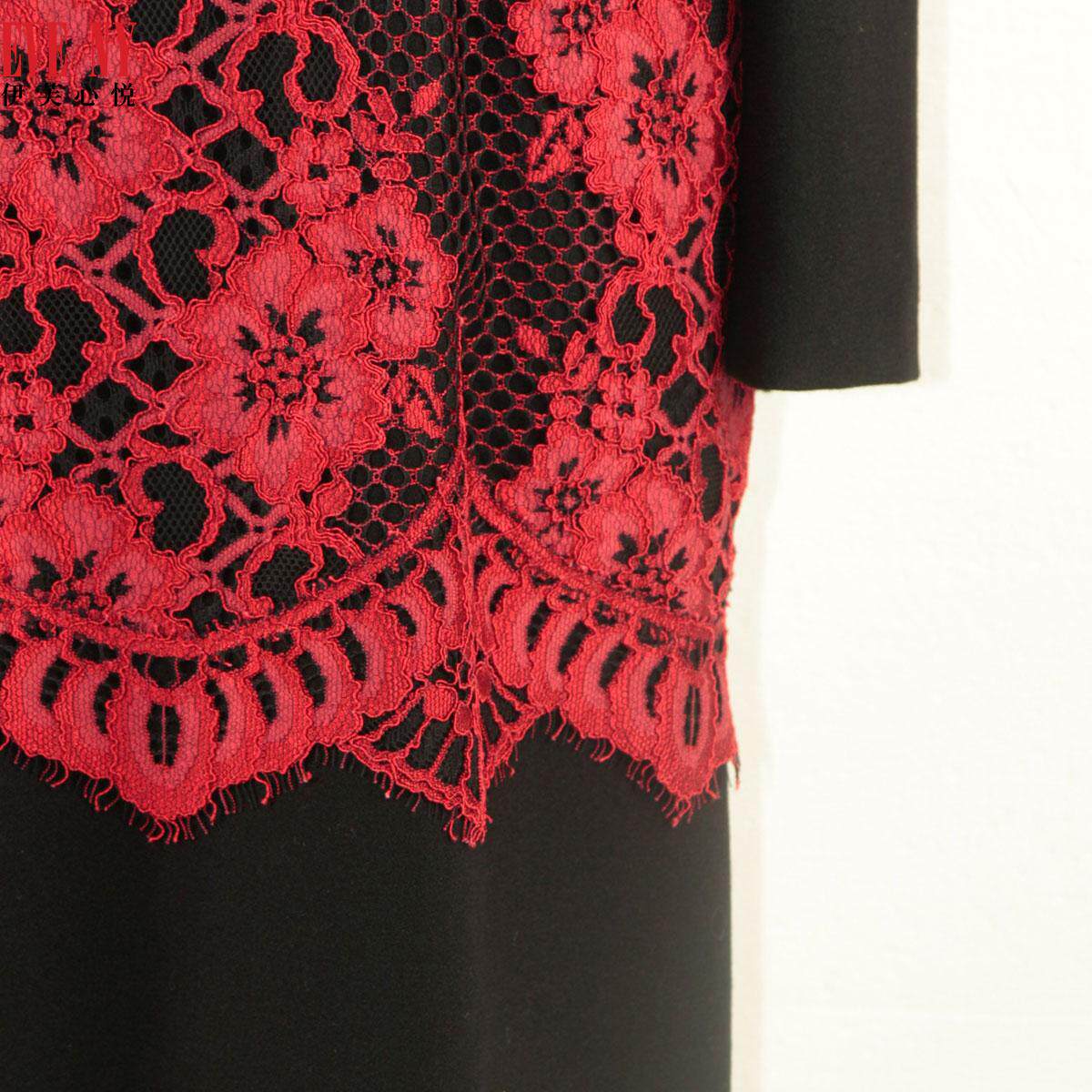 安妮不火纤指玲兰提花绸缎蕾丝拼接长裙女微胖大码 气质连衣裙 法式