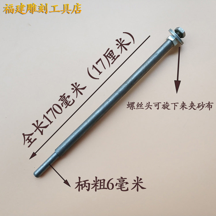 6MM柄加长打磨杆螺丝钢杆圆棒手电钻砂纸夹花头杆短柄6个大砂布杆由