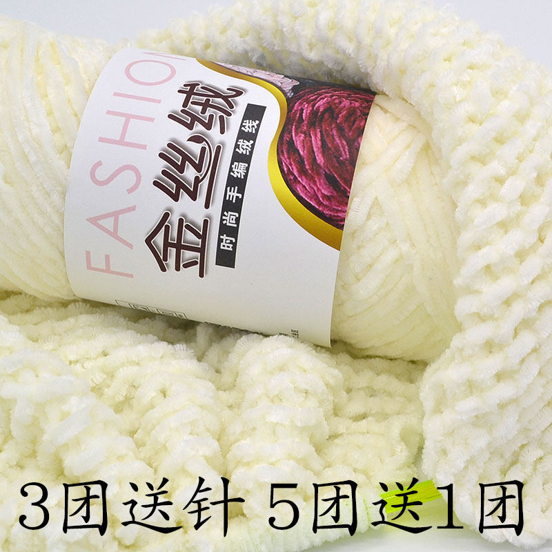 雪尼尔毛线 线钩小熊玩偶中粗毛线团 金丝绒毛线手工diy编织棉拖鞋