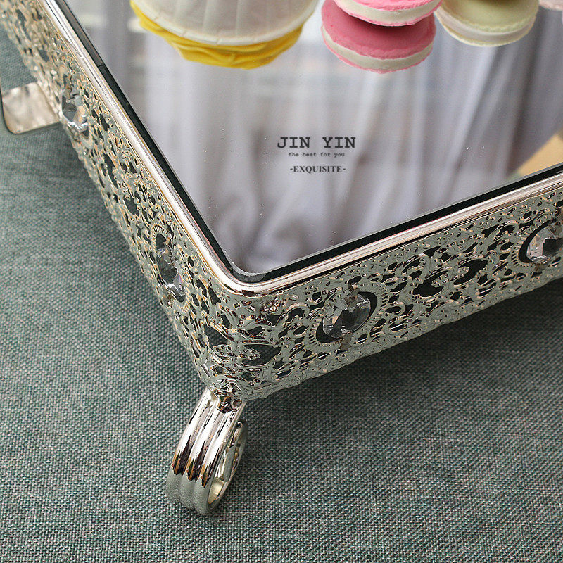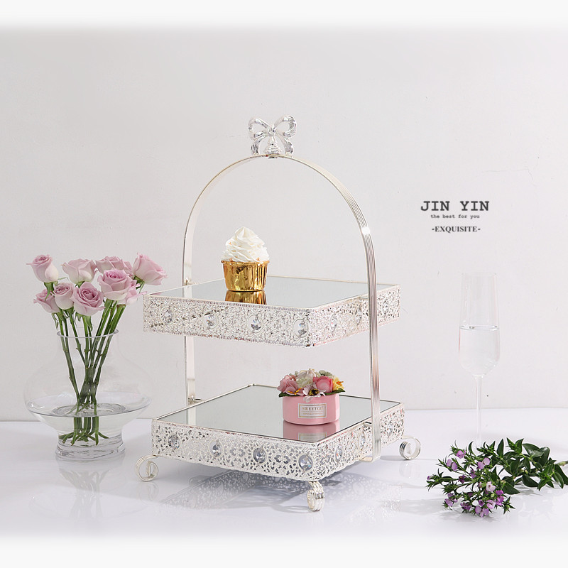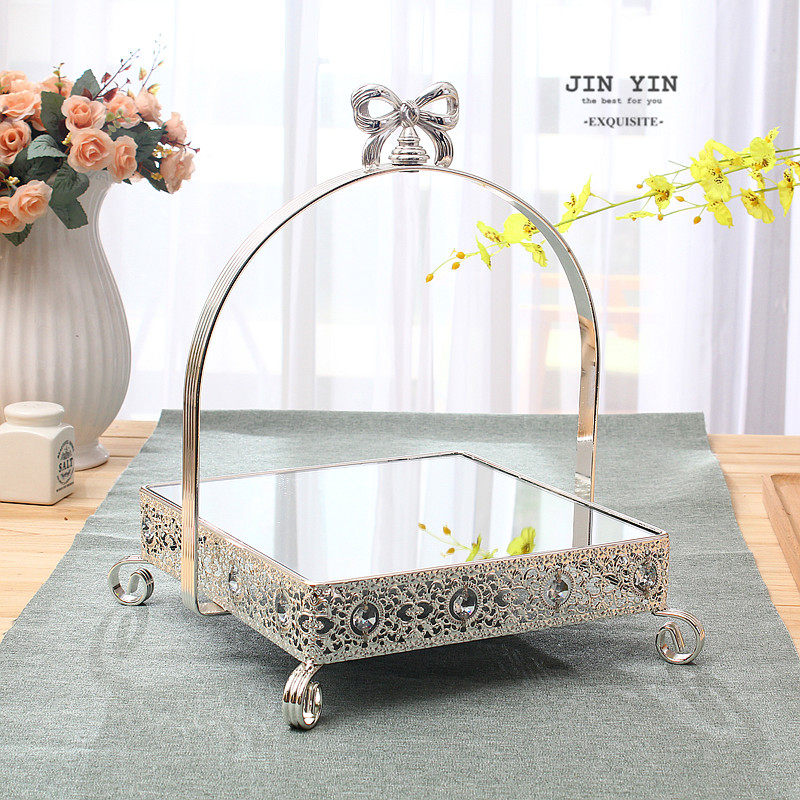金属点心架方形镜面蛋糕台 银色摆件果盘 婚庆甜品台下午茶点心架