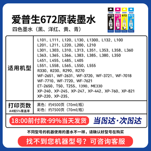 L365 墨水T672四色彩色连供L360 L485 L310 L565 L380 L313 爱普生原装 epson打印机墨水 L551 L130 L383