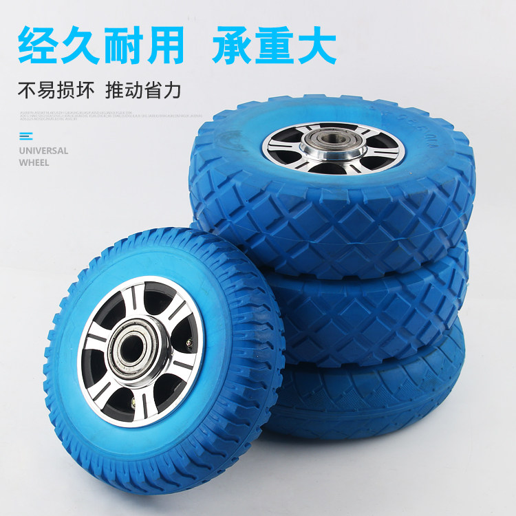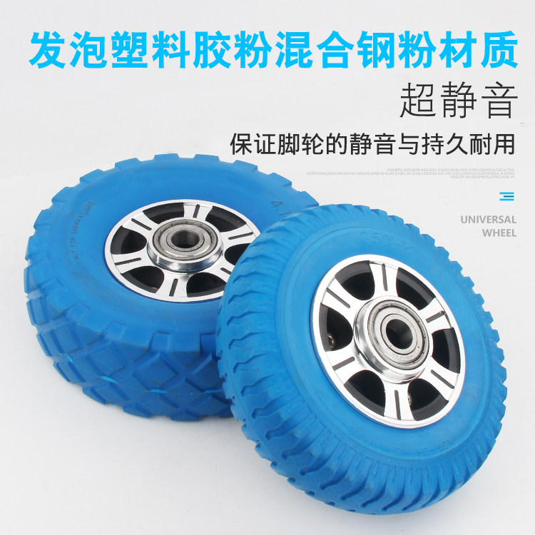 6寸8寸10寸实心万向轮蓝色发泡轮胎静音橡胶脚轮手推平板车定向轮