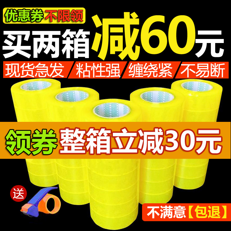 封口胶布淘宝警示封箱胶纸宽黄色特惠批发 透明胶带大卷快递打包装