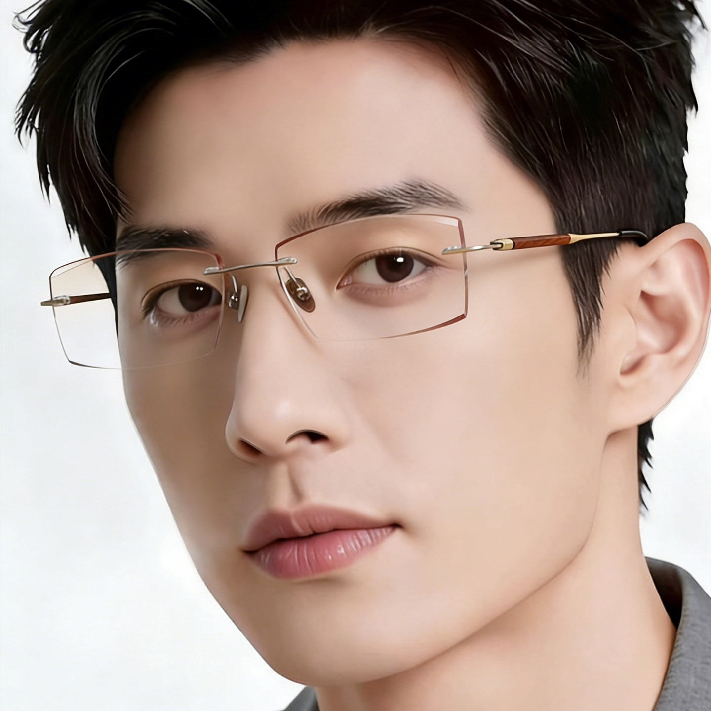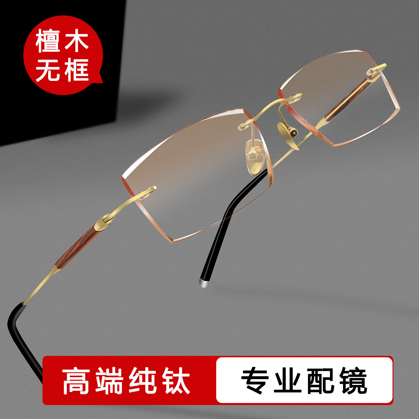 为您提供商品可配度数大脸配眼镜高颜值商务纯钛无边框 檀木无框近视眼镜男款的详细介绍,