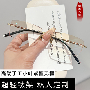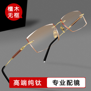 可配度数大脸配眼镜高颜值商务纯钛无边框 檀木无框近视眼镜男款由