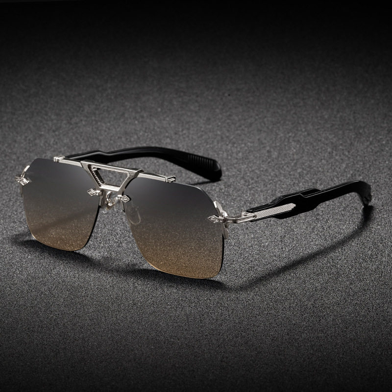 新蒸汽朋克风无框太阳镜男款 高级酷帅眼镜 品质感方框防晒墨镜男士