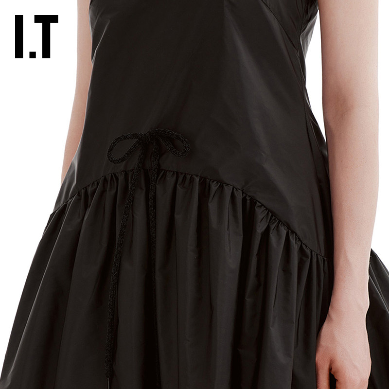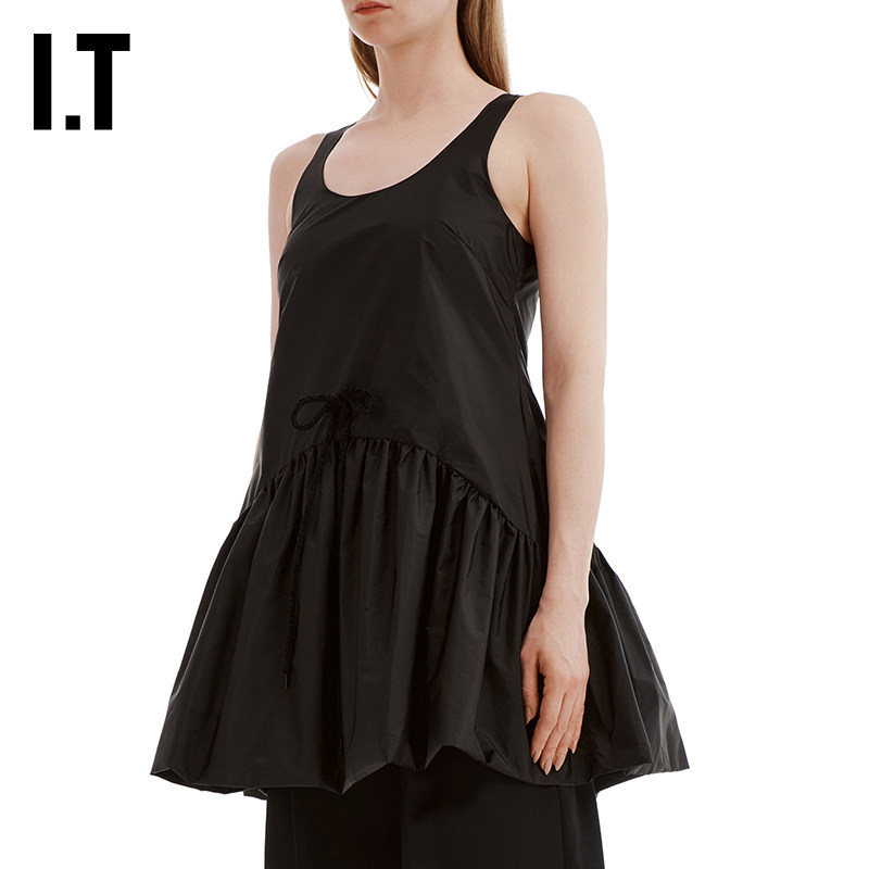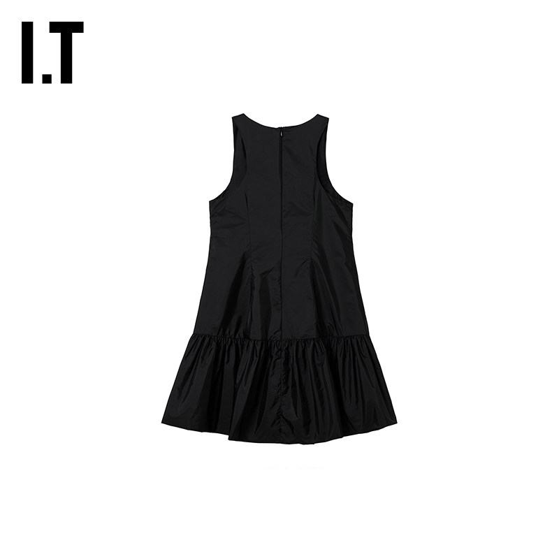 pusumede 设计感收腰显瘦气质长裙 黑色圆领针织背心连衣裙女夏季