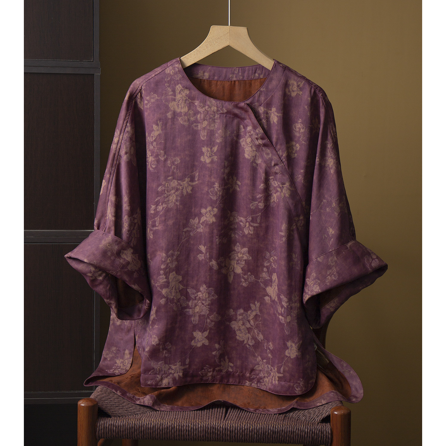 100%桑蚕丝双非遗香云纱扫染真丝套装 两件套春 女宽松上衣长裤